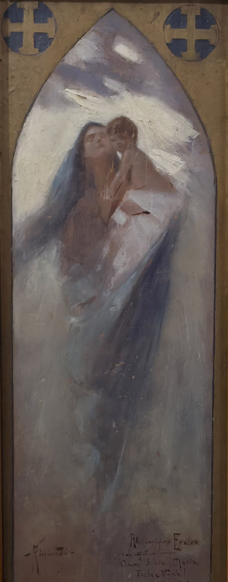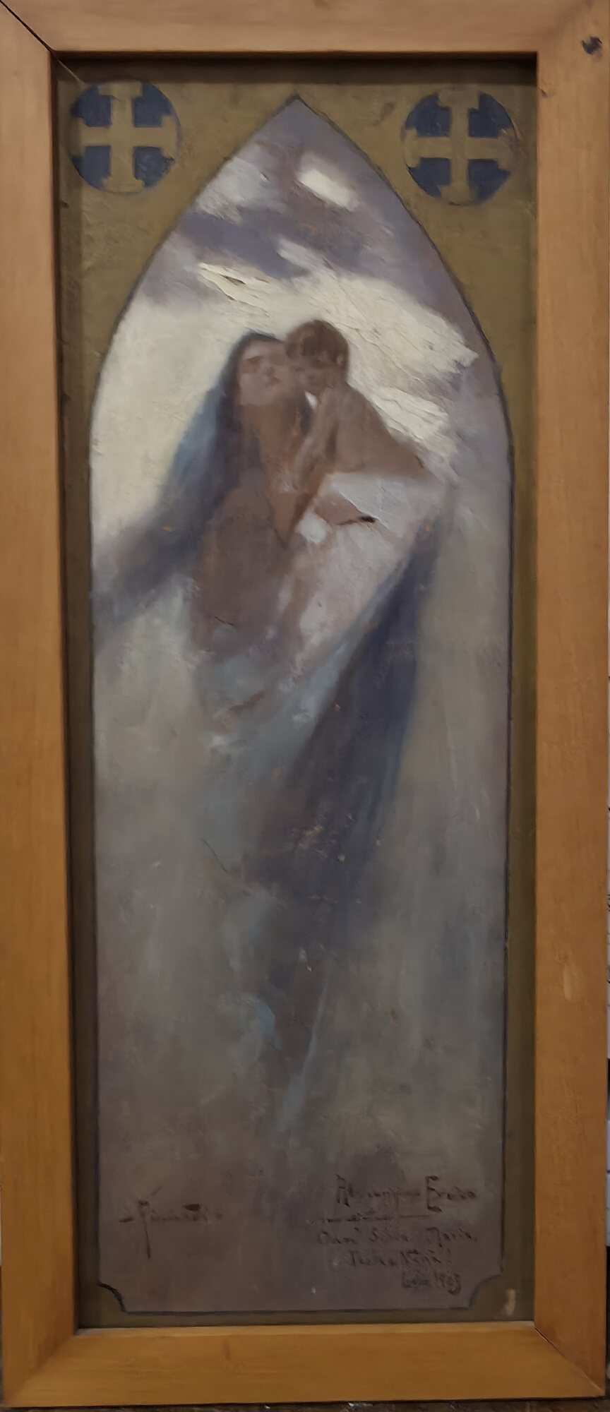 Oscar Ricciardi (Napoli 1864 – Napoli 1935) Madonna con bambino Misure:cm.14 x 36 senza cornice.Misure:cm.17 x 39 con cornice.Olio su tavola.Madonna con bambino.Firma in basso a sx Ricciardi. Spedizione Italia €27 in ottime condizioni