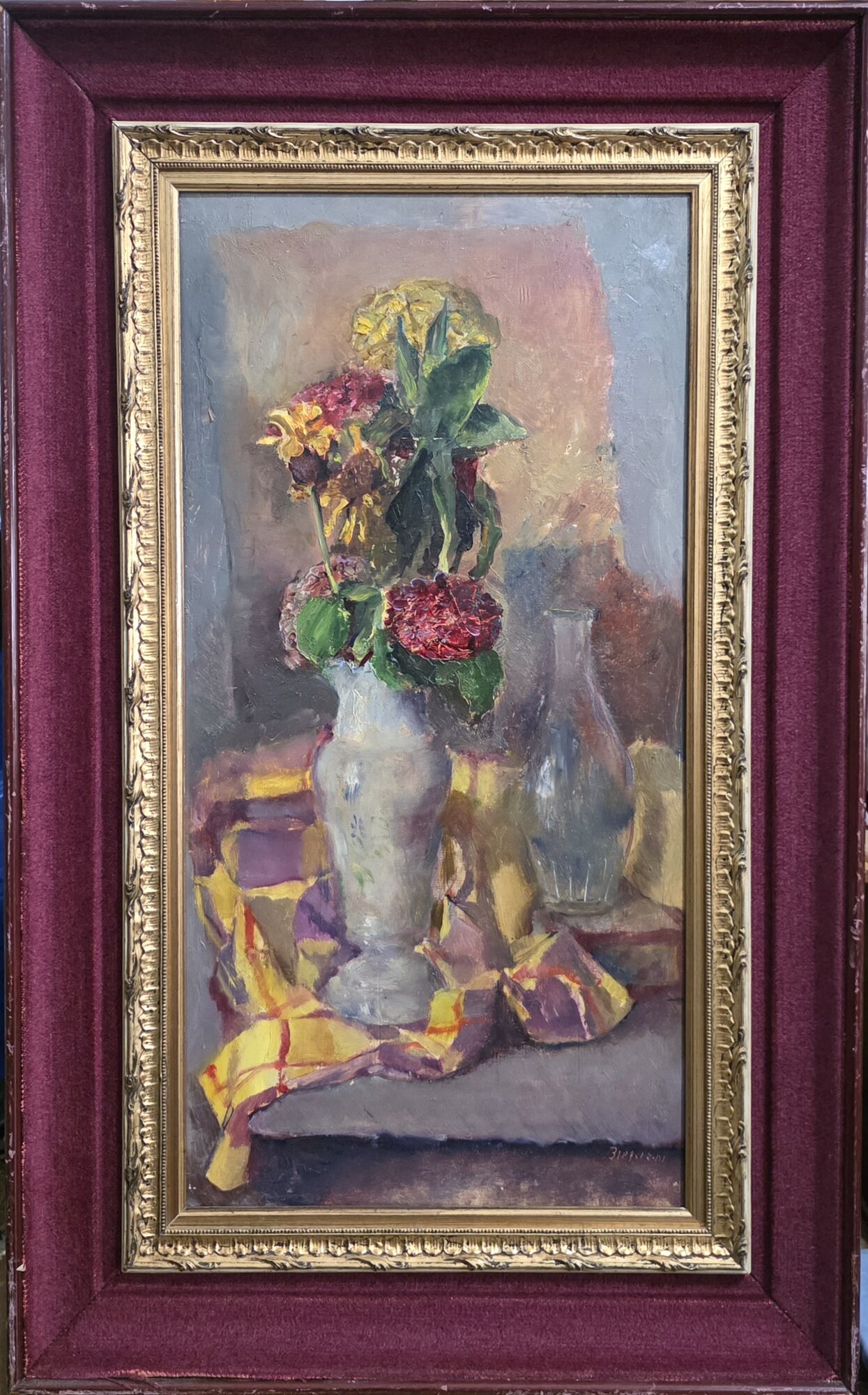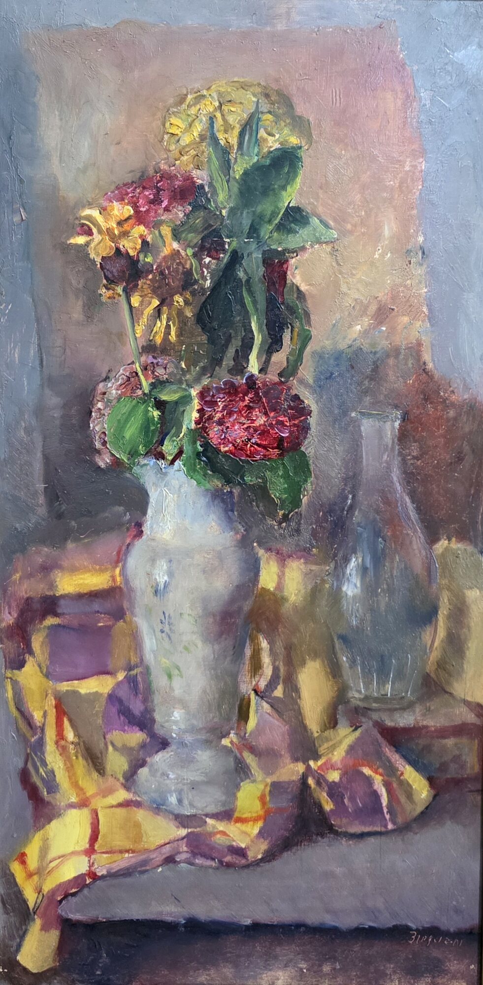 Antonio Bresciani (Napoli 1902-1998) Fiori Misure:cm.33,5 x 64,5 senza cornice.Misure:cm.52 x 82 con cornice.Olio su pannello.Fiori. Firma in basso a dx Bresciani. in ottime condizioni