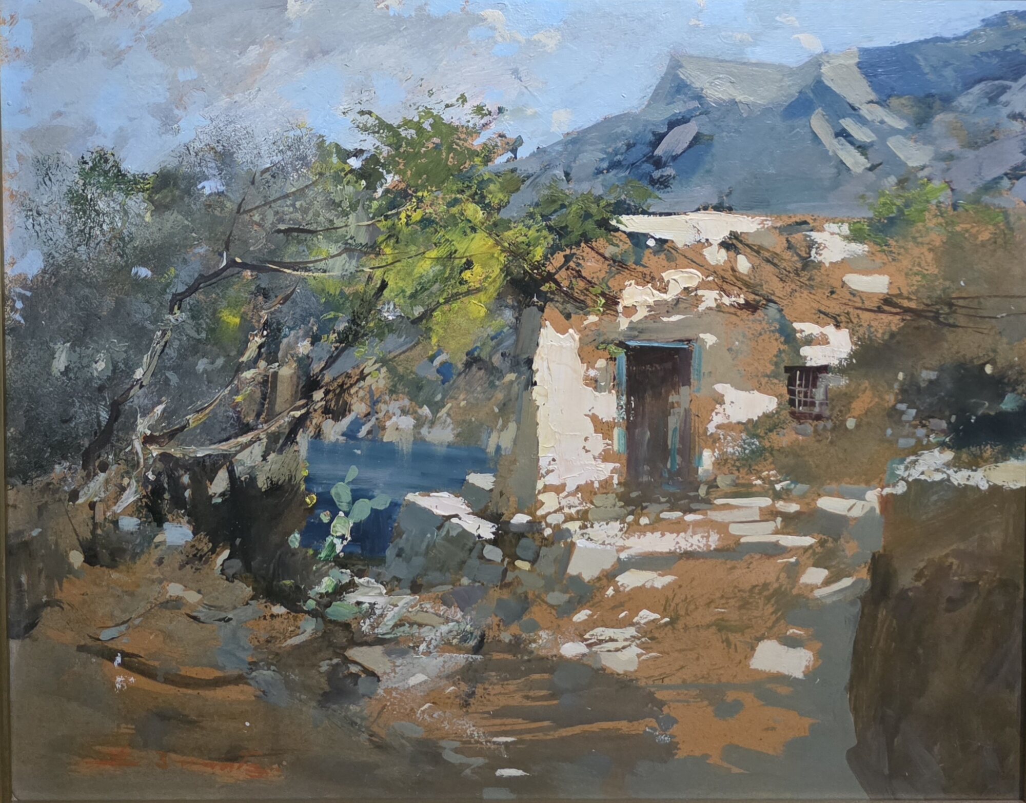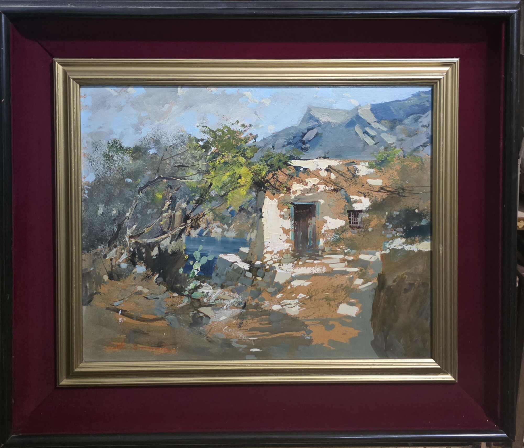 Ezelino Briante( Napoli 1901-Roma 1971) Paesaggio Misure:cm.40 x 50 senza cornice.Misure:cm.63 x 73 con cornice.Olio su cartoncino.Paesaggio.Firma in basso a sx E.Briante. Spedizione Italia € 29 in ottime condizioni