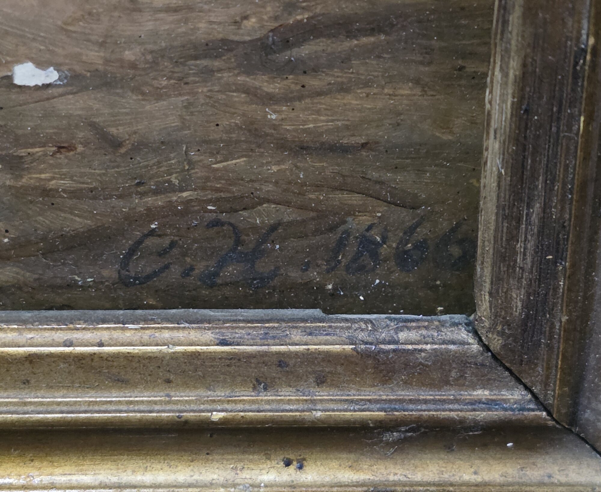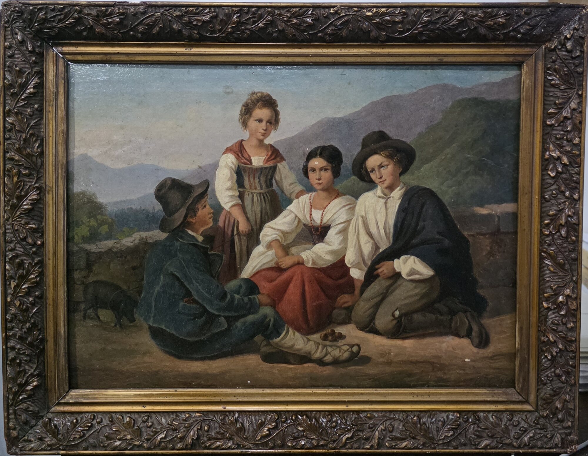 Artista europeo XIX secolo Campagna romana con pastorelli Misure:cm.30 x 42 senza cornice Misure:cm.38 x 48 con cornice Olio su tavola.Campagna romana con pastorelli Monogramma in basso a dx C.H. 1866 Spedizione Italia € 29 in ottime condizioni