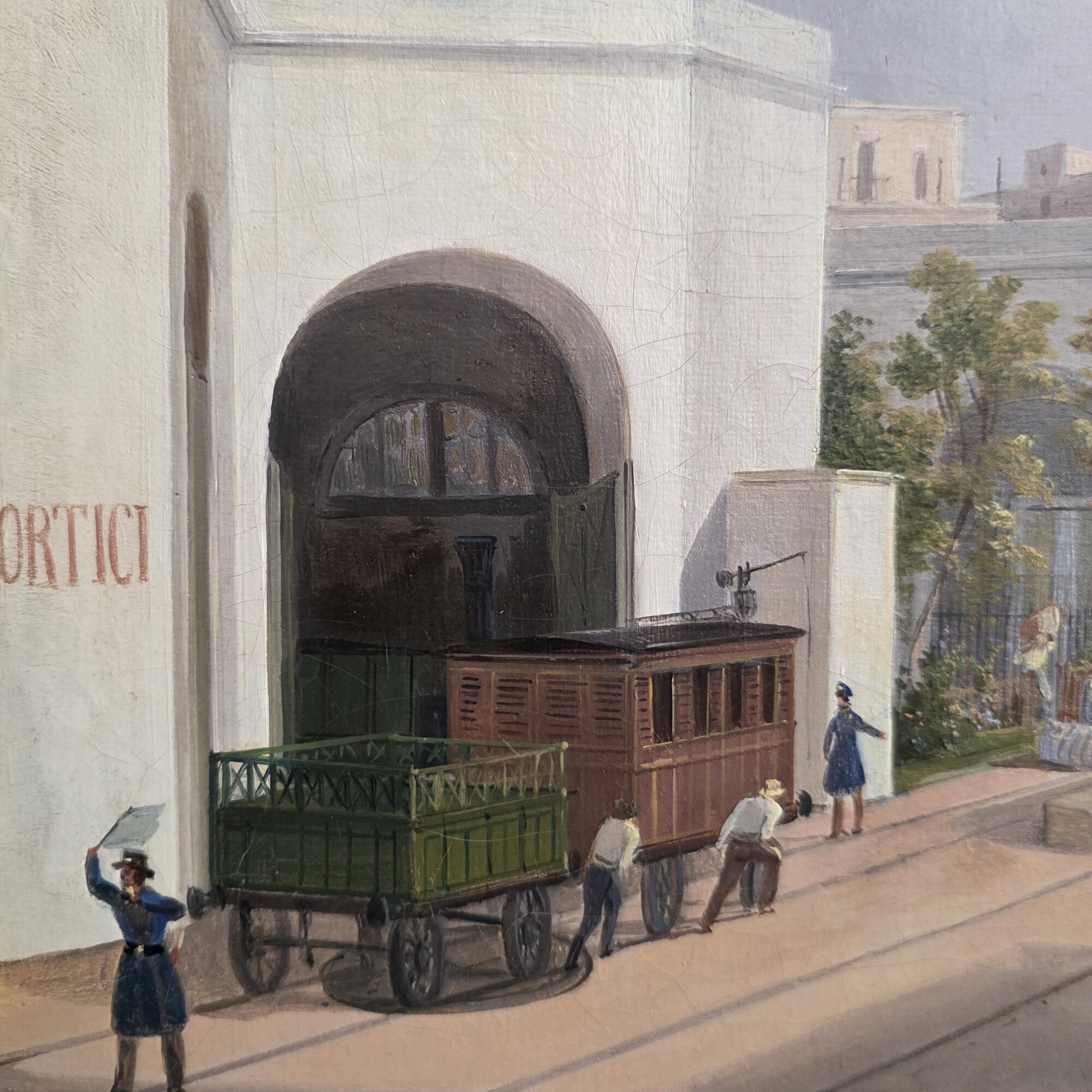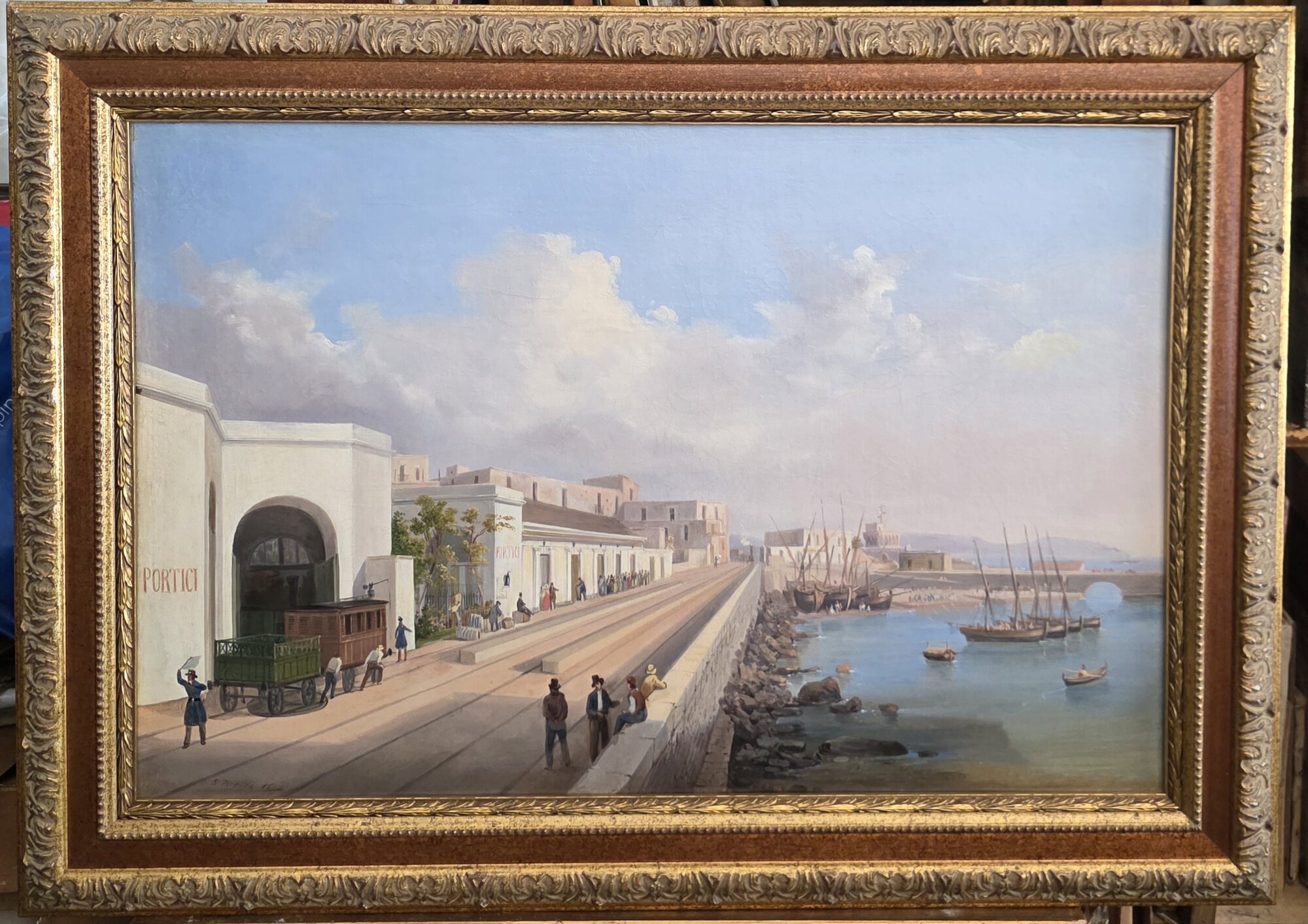Salvatore Fergola (Napoli 1799-Napoli 1874 Ferrovia Napoli-Portici Misure:cm.45 x 67 senza cornice Olio su tela Ferrovia Napoli-Portici Firma in basso a dx S.Fergola 1844 Spedizione Itaia €55 in ottime condizioni