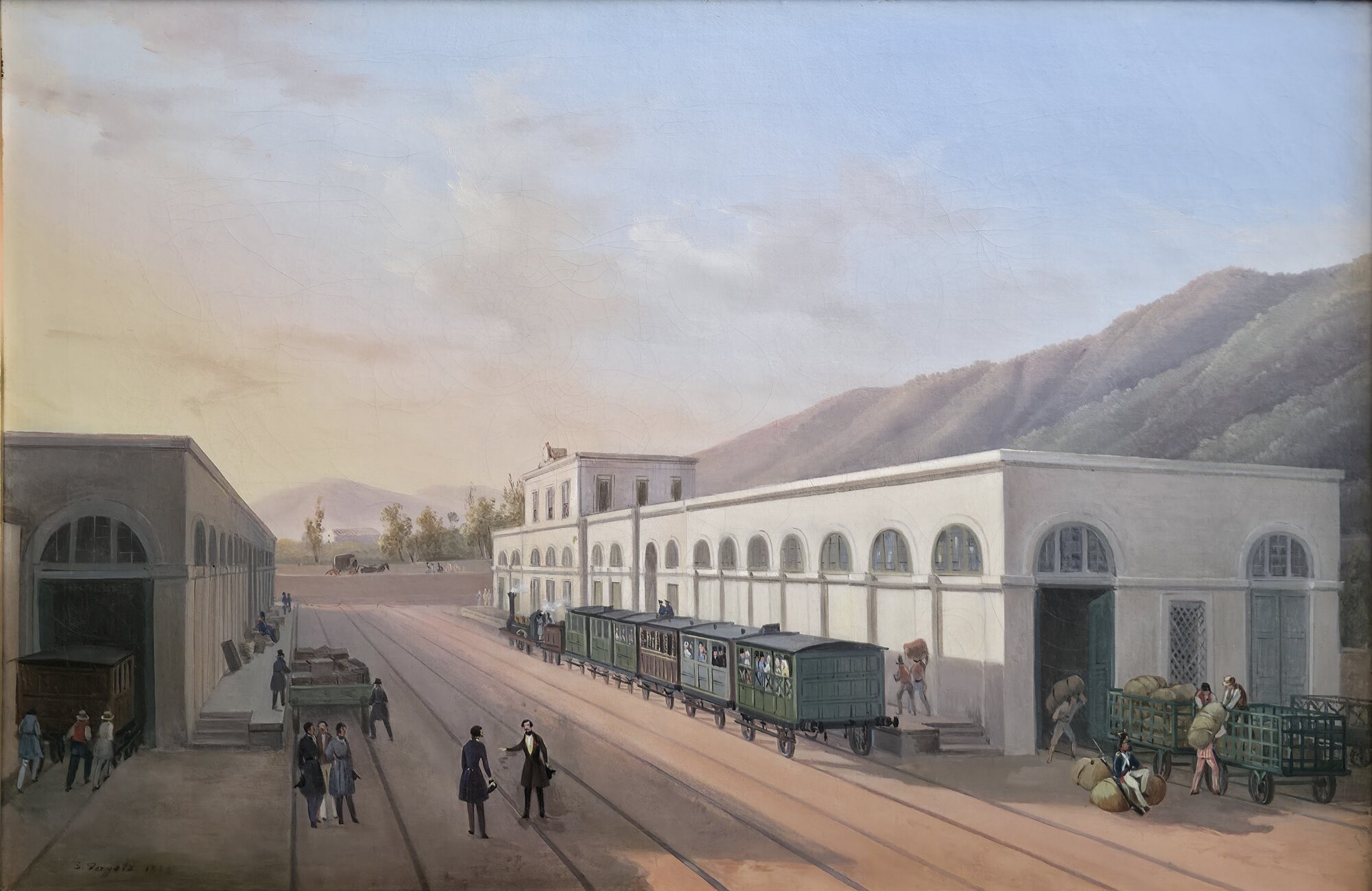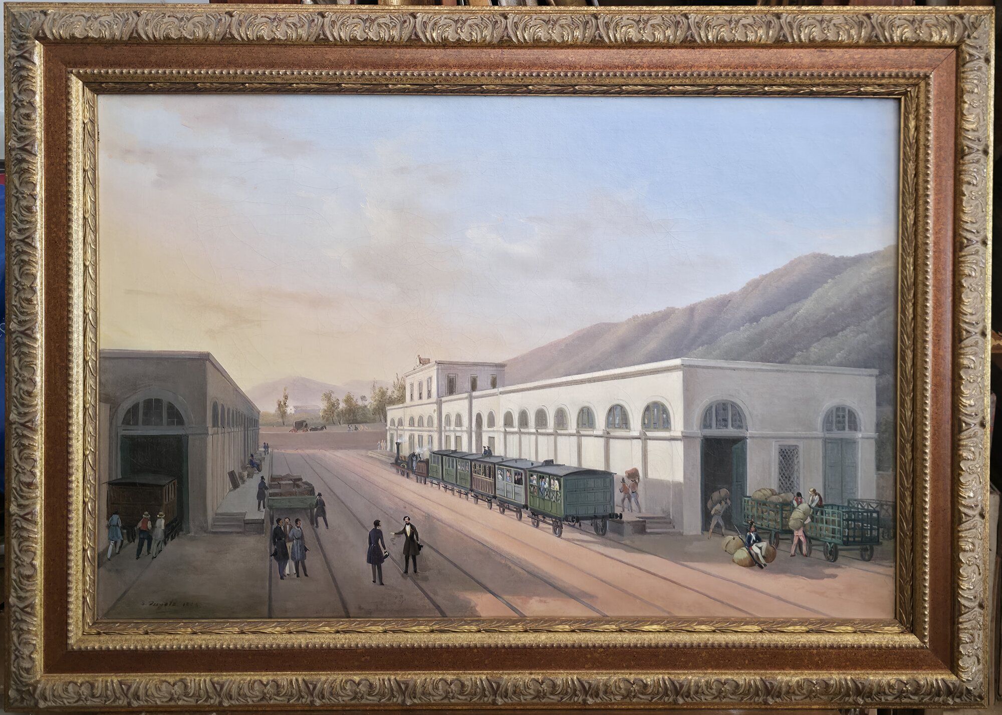 Salvatore Fergola (Napoli 1799-Napoli 1874 Ferrovia Napoli-Portici Misure:cm.45 x 67 senza cornice Olio su tela Ferrovia Napoli-Portici Firma in basso a sx S.Fergola 1845 Spedizione Itaia €55 in ottime condizioni