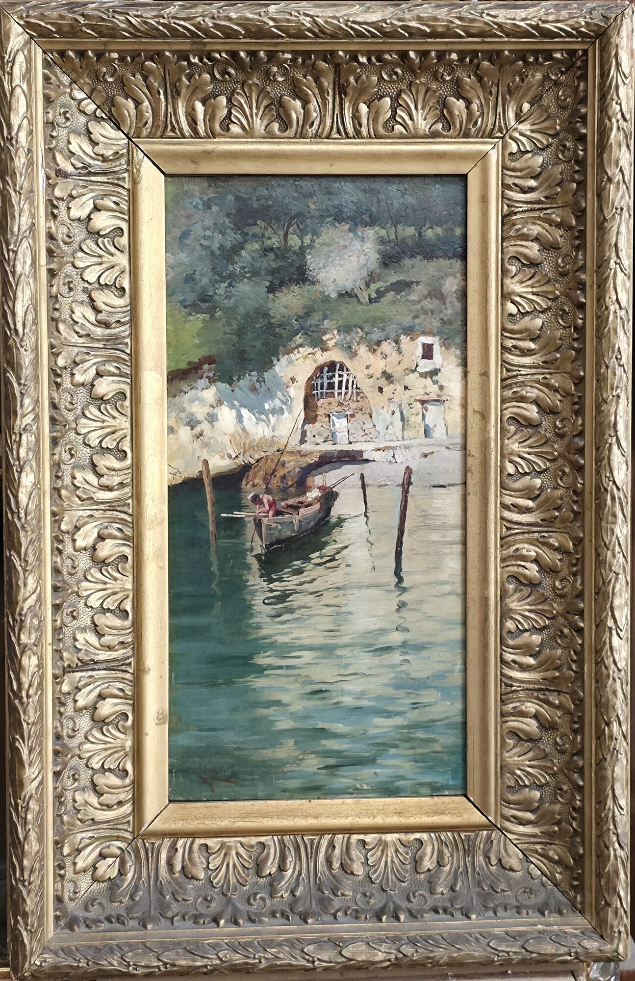 Giuseppe Giardiello ( Napoli 1871 – 1916) Pescatori a Piano di Sorrento Misure:cm.20 x 39 senza cornice Misure:cm.38 x 58 con cornice Olio su tavola Pescatori a Piano di Sorrento Firma in basso a sx G.Giardiello Spedizione Italia € 30 in ottime condizioni