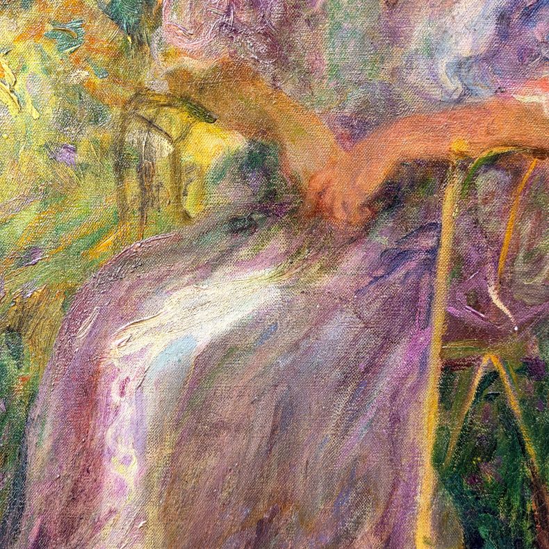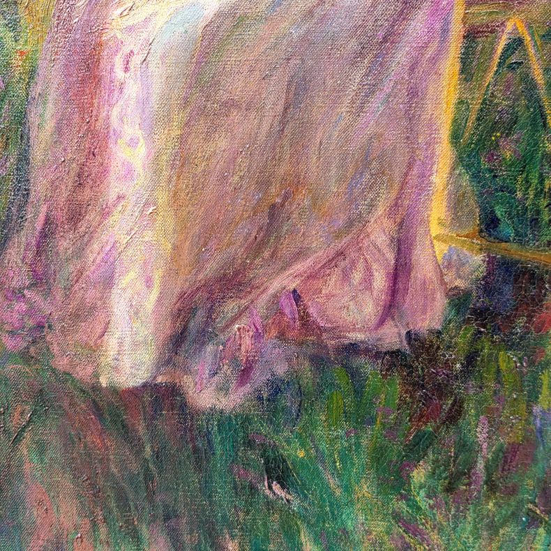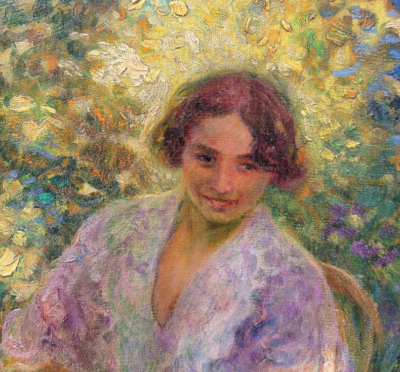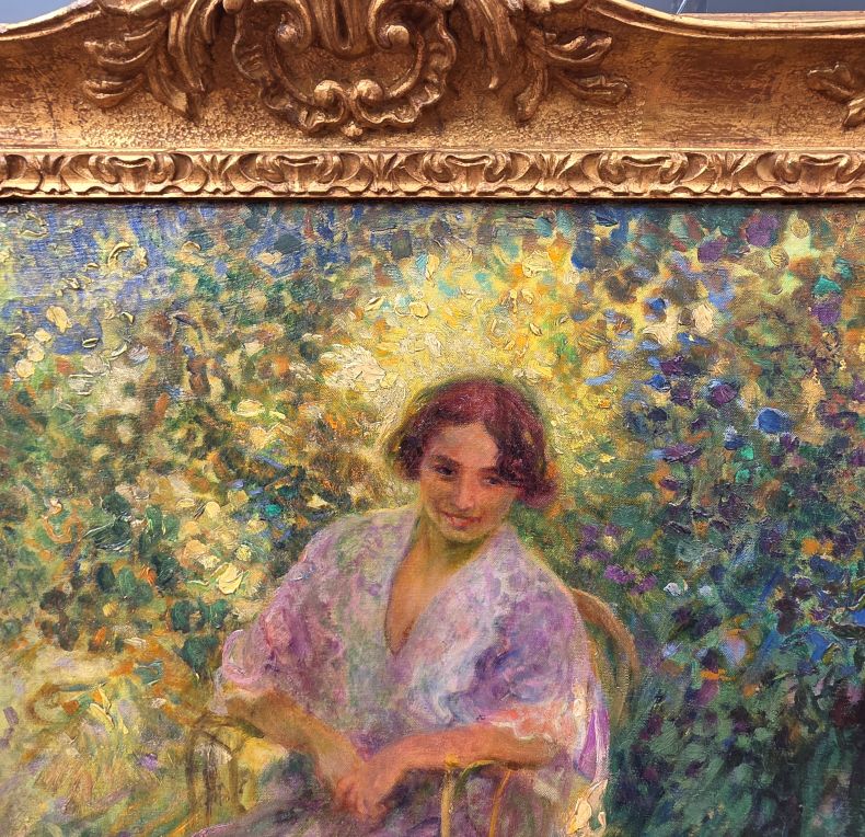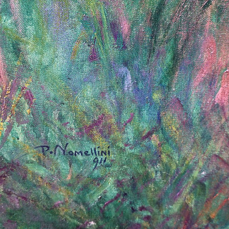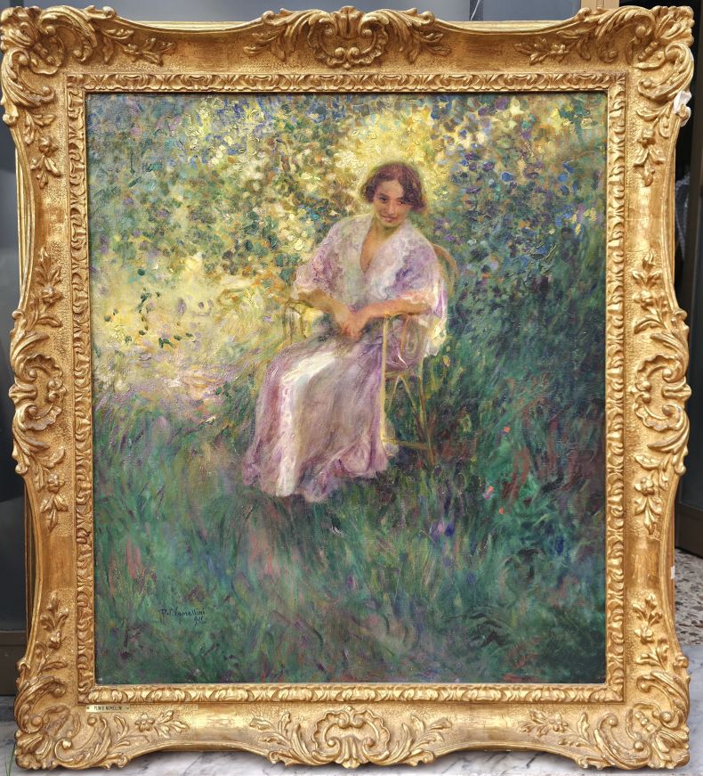 Plinio Nomellini (Livorno 1866 – Firenze 1943) La signora Tommasi in giardino Misure:cm.83 x 96 senza cornice Misure:cm.104 x 116 con cornice Olio su tela La signora Tommasi in giardino Firma in basso a sx P.Nomellini 911. Autentica a retro Spedizione Italia € 80 in ottime condizioni