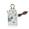 CIOCCOLATIERA CON COPERCHIO IN PORCELLANA, MEISSEN, 1760 CA., cilindrica con manico laterale in legno tornito, decoro floreale nei toni del verde; profili in oro.