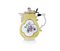 LATTIERA CON COPERCHIO IN PORCELLANA, MEISSEN, 1750 CA., piriforme con manico ad osso e decoro floreale policromo entro riserve quadrilobate su fondo giallo; coperchio con montatura di collegamento in metallo; probabile restauro.