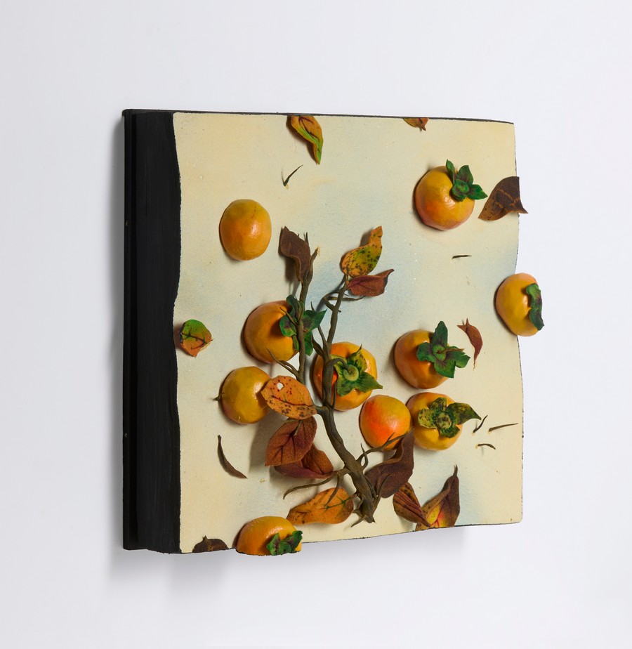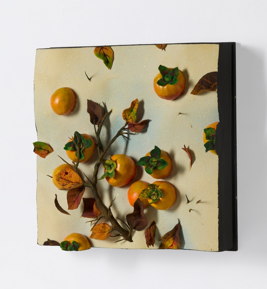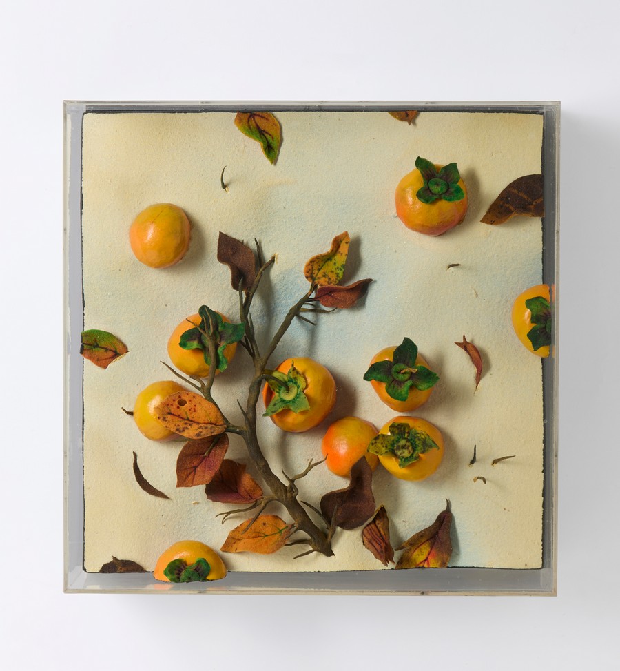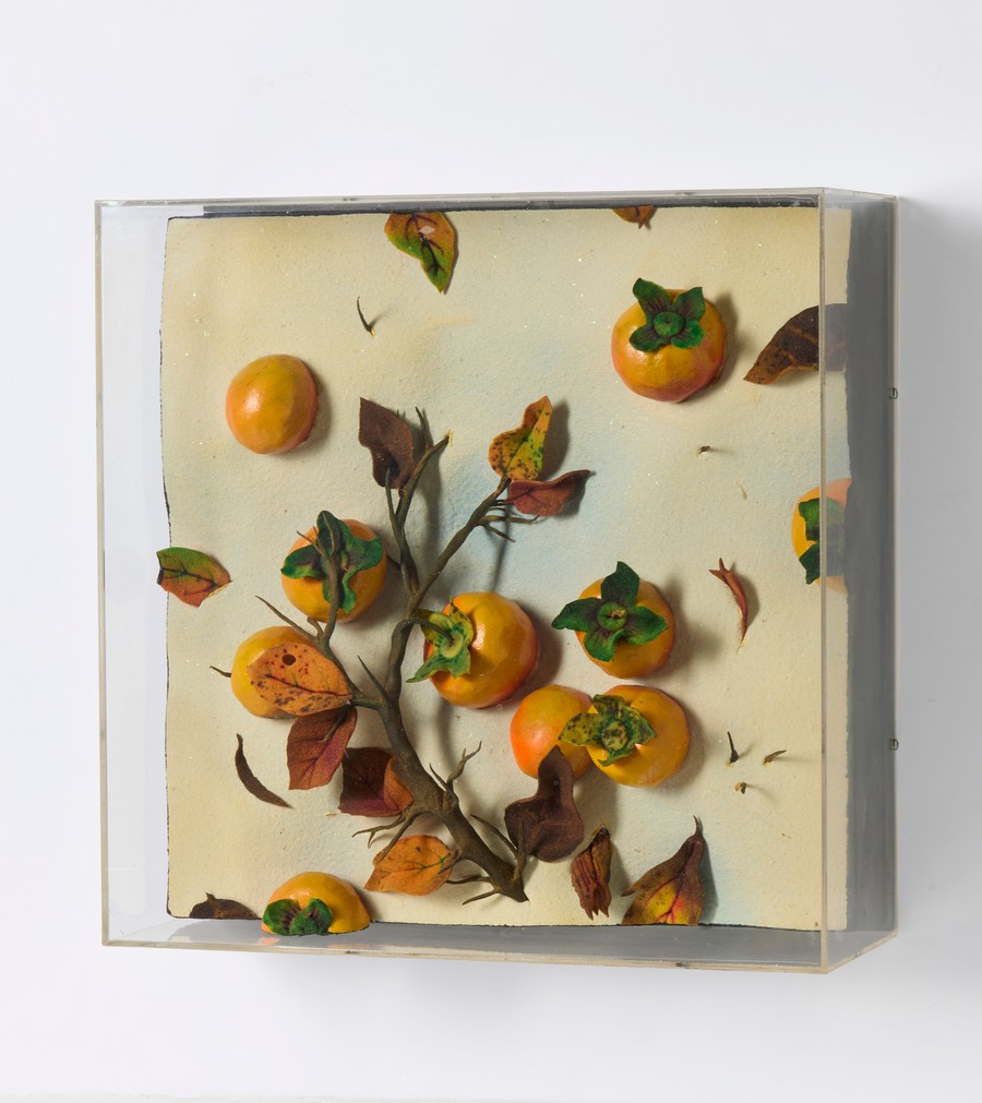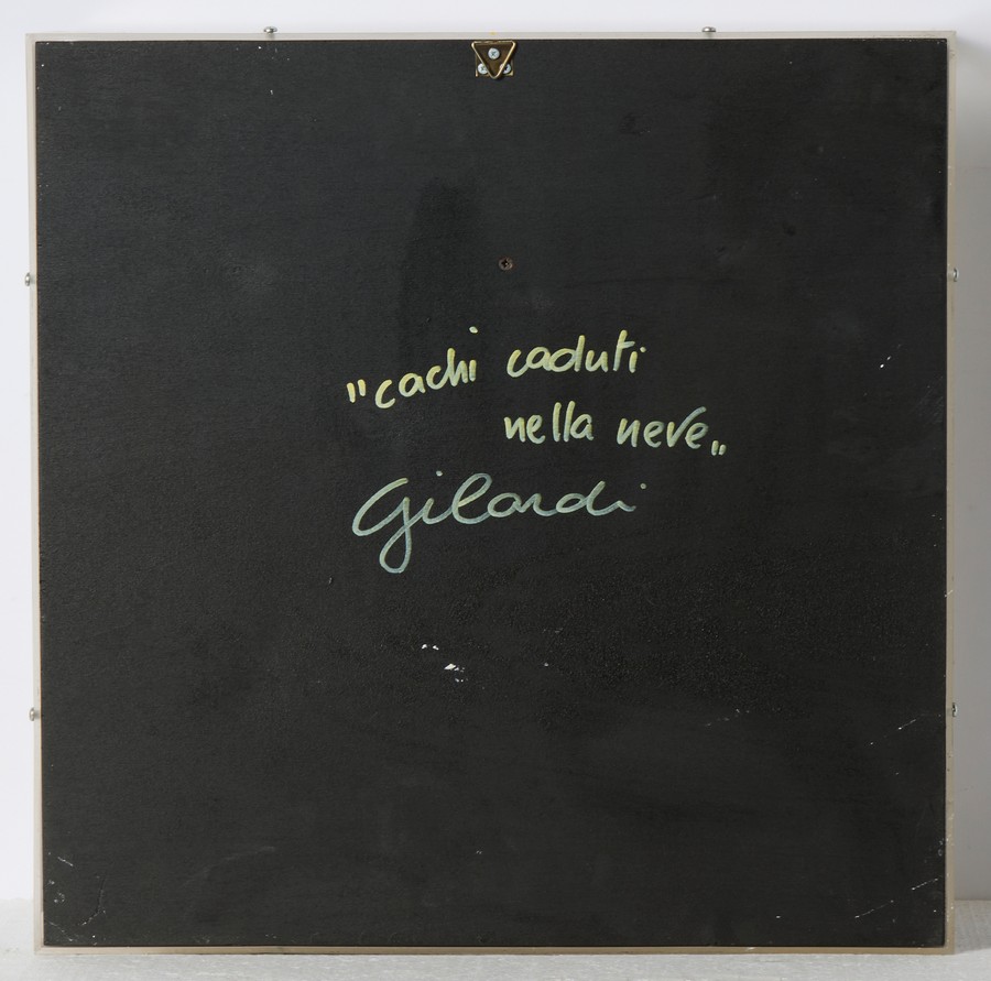 GILARDI PIERO (1942 - 2023) CACHI CADUTI NELLA NEVE. 2002. poliuretano espanso dipinto, entro teca di plexiglass. Cm 50,00 x 50,00. sul retro: firma e titolo