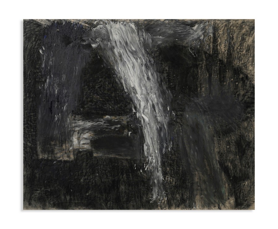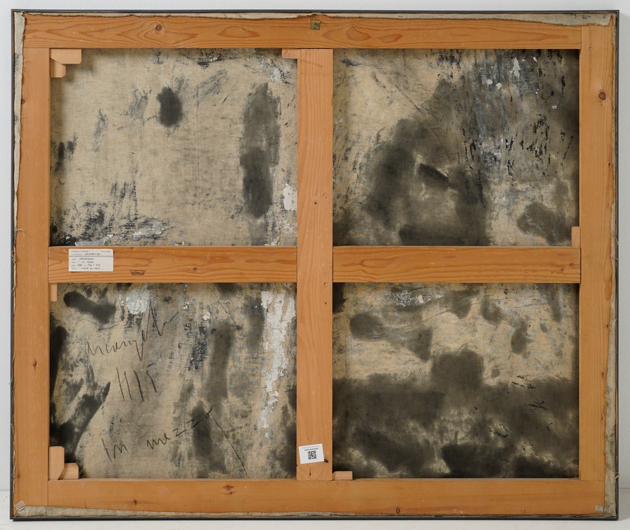 ARCANGELO (ARCANGELO ESPOSITO) (n. 1956) IN MEZZO. 1985. Tecnica mista su tela. Cm 134,00 x 112,00. sul retro: firma, titolo, data, etichetta e timbro Galleria La Bertesca, Genova