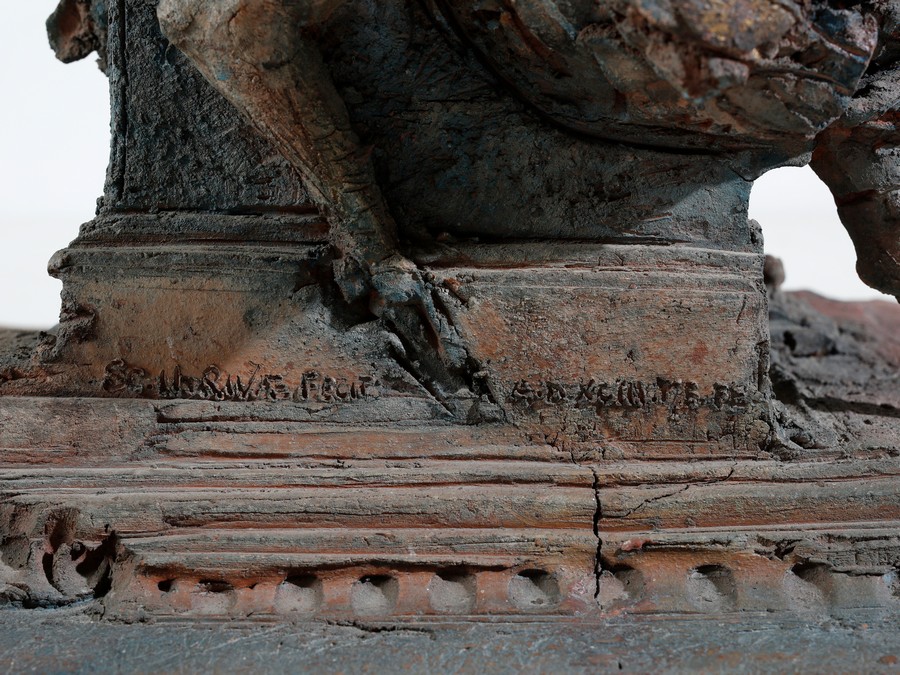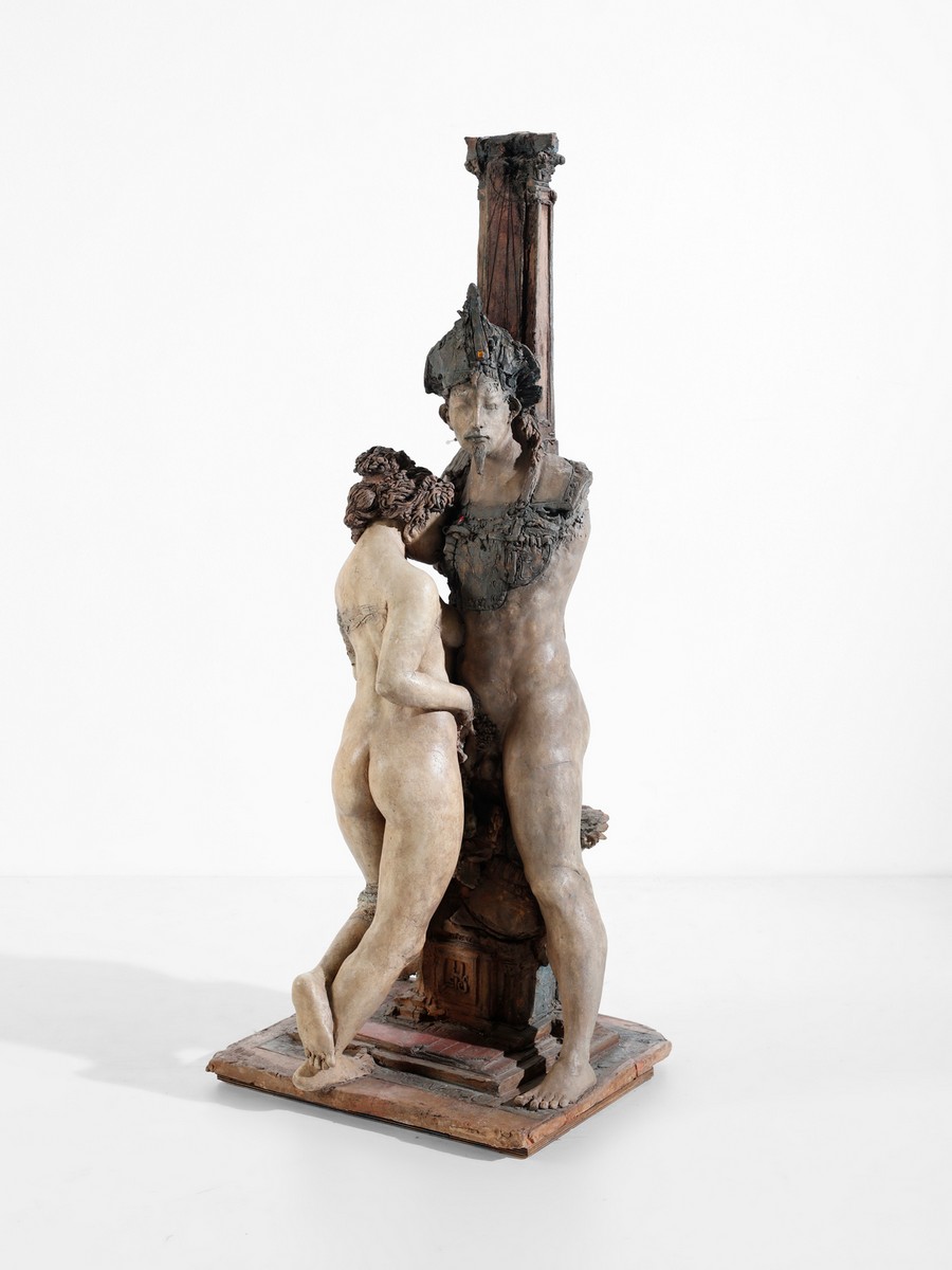 RIVA UGO (n. 1951) EROS E THANATOS. 1993. Terracotta dipinta. Cm 64,00 x 159,00 x 62,00. sul retro: firma e data