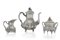 SERVIZIO DA CAFFE' IN ARGENTO, INIZIO XX SECOLO, composto da caffettiera, lattiera e zuccheriera con coperchio, decori a sbalzo e cimature a fiori.