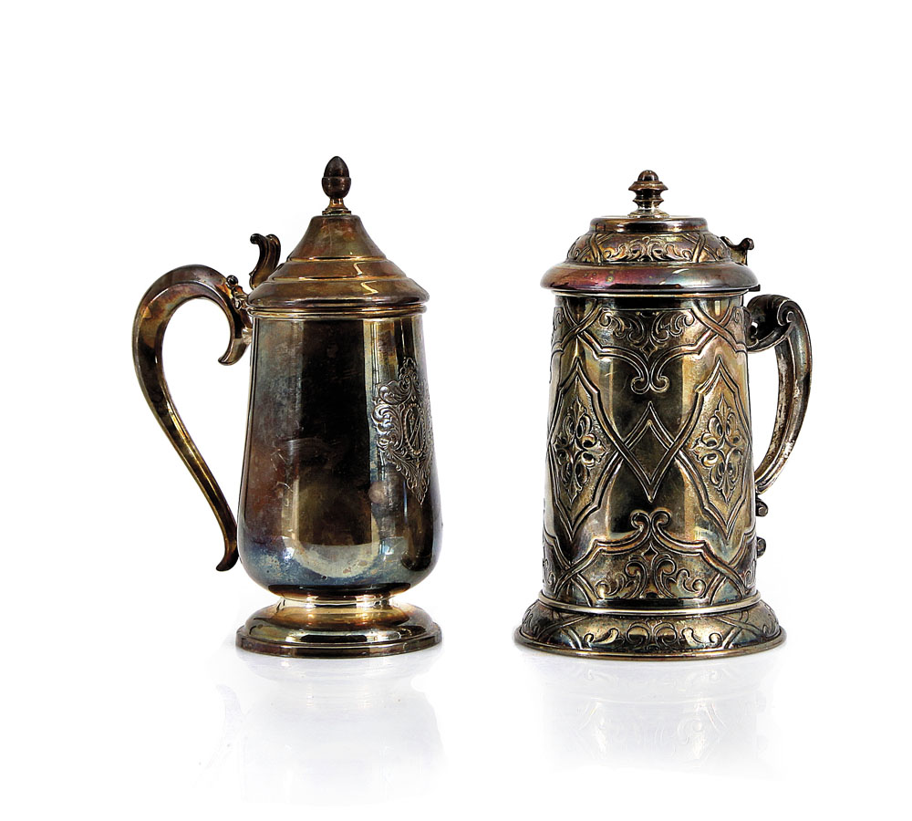 ARGENTI RECENTI DUE TANKARD IN ARGENTO, XX SECOLO, di diversa forma, di cui...