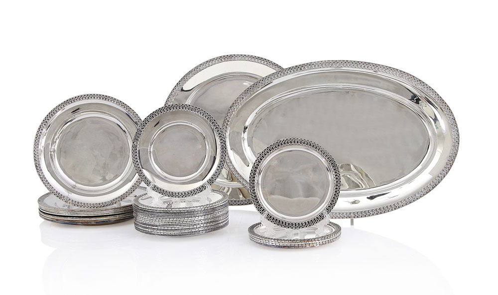 ARGENTI RECENTI SERIE DI TRENTADUE PIATTI IN ARGENTO, XX SECOLO, di cui uno...