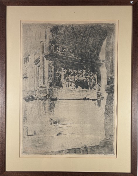 "Cortile di Palazza Marino" e "Arco di Tito" (I stato) acqueforti (cm max lastra 65x45)