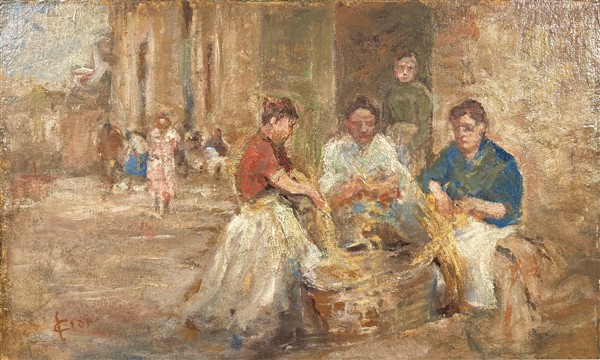 Lotto 21 | Cesare Ciani "Il vaglio del grano" olio su cartone (cm 25x40) firmato in basso