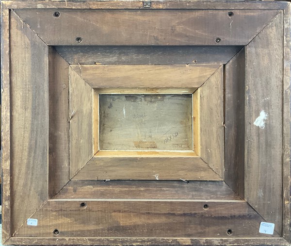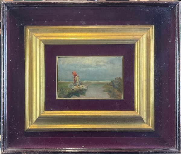 Francesco Gioli "Sulla riva" olio su tavola (cm 10x16) firmato in basso a destr