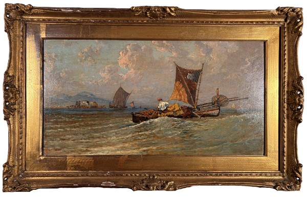 Giuseppe Carelli "Marina napoletana con pescatori" Napoli olio su tavola (cm 26x