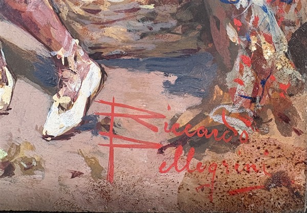 Lotto 44 | Riccardo Pellegrini "Venditori d'arance" olio su cartone (cm 45x30) firmato in