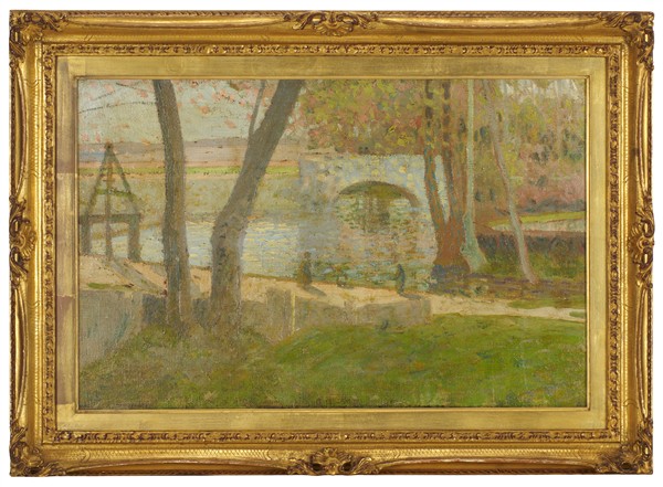 Ignoto postimpressionista "La chiusa" olio su tela applicata a compensato (cm