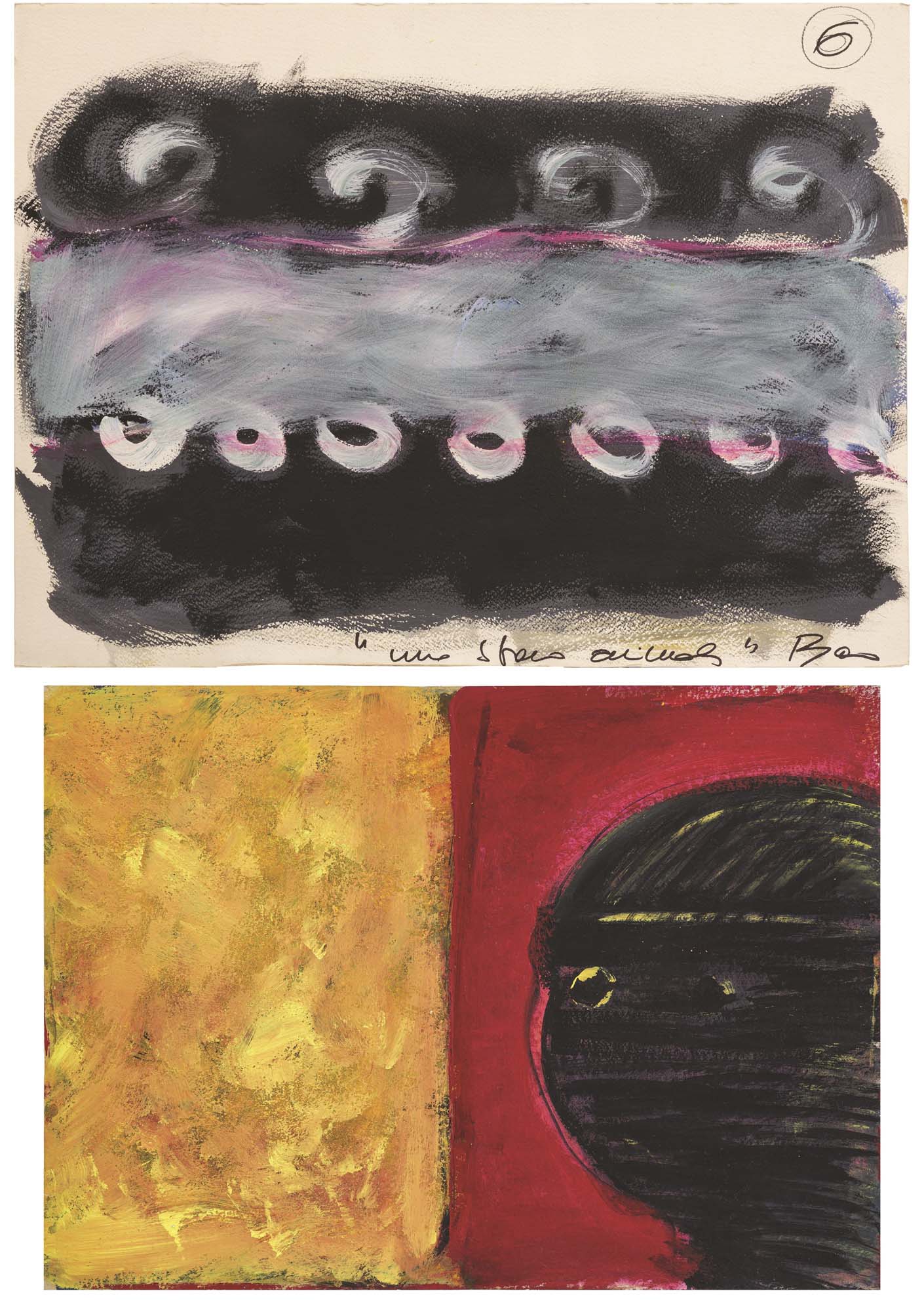 lotto di 2 pastelli e pigmenti naturali su cartoncino cm. 49,5x69,5 - 56,6x76