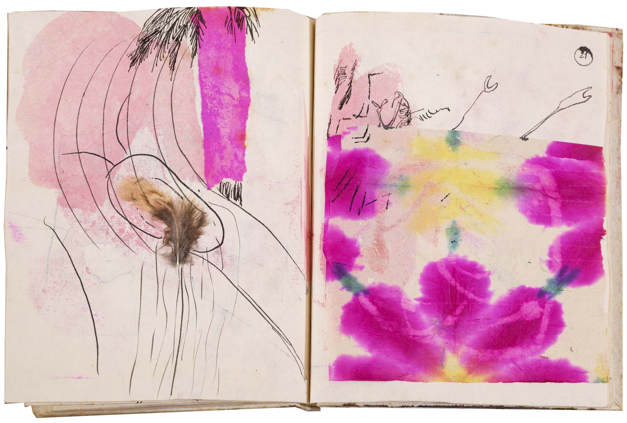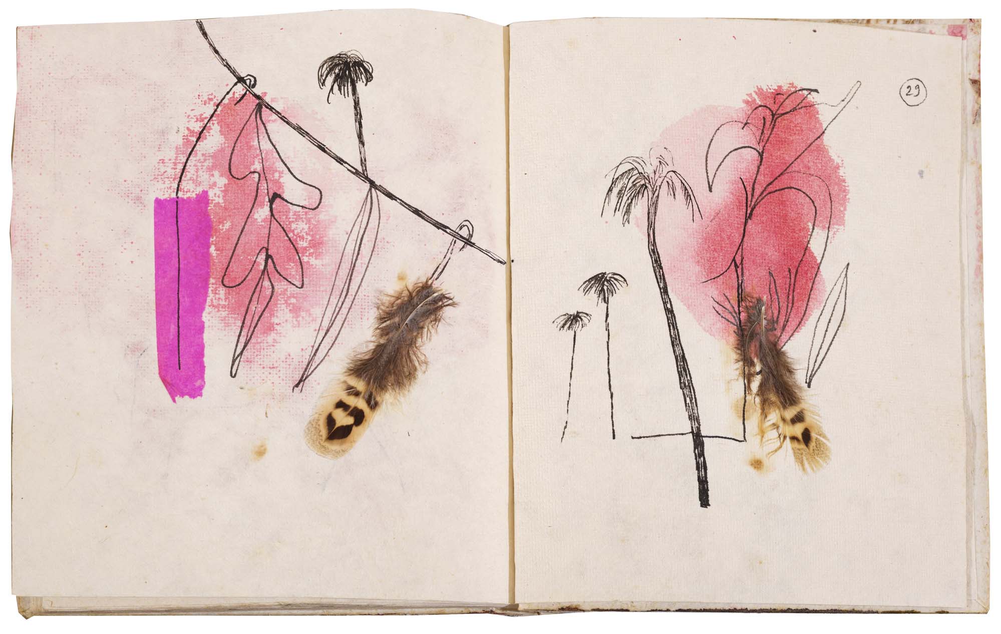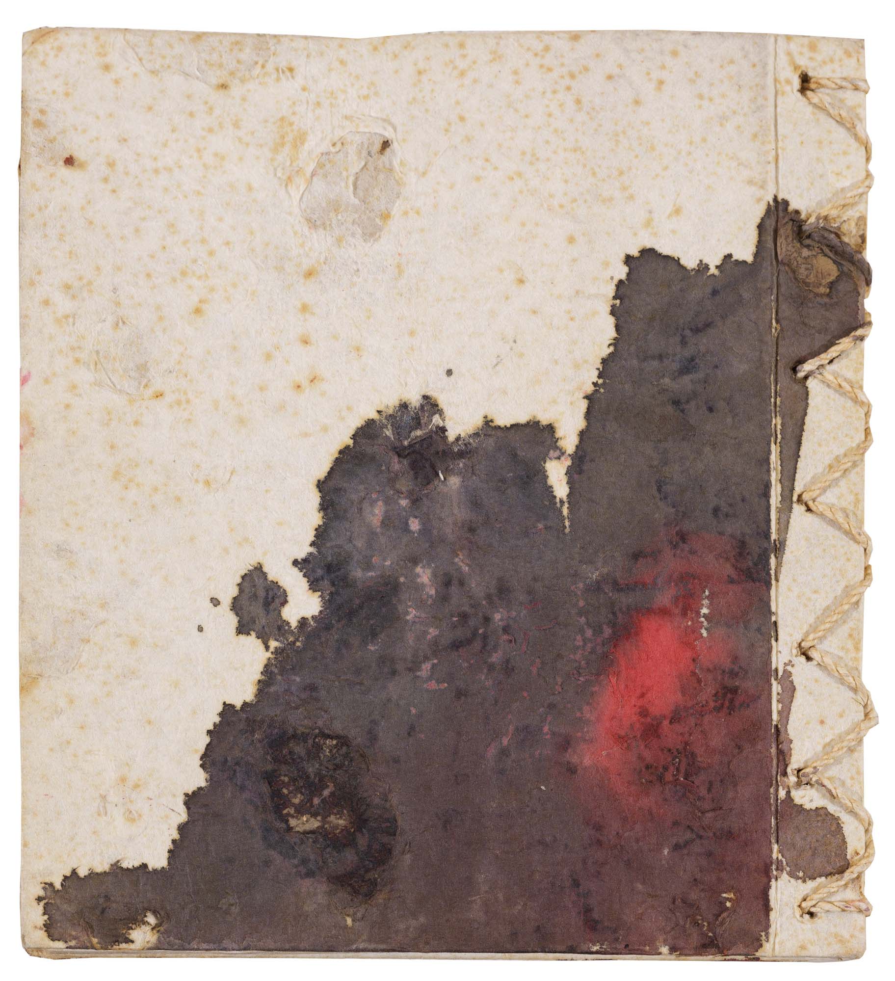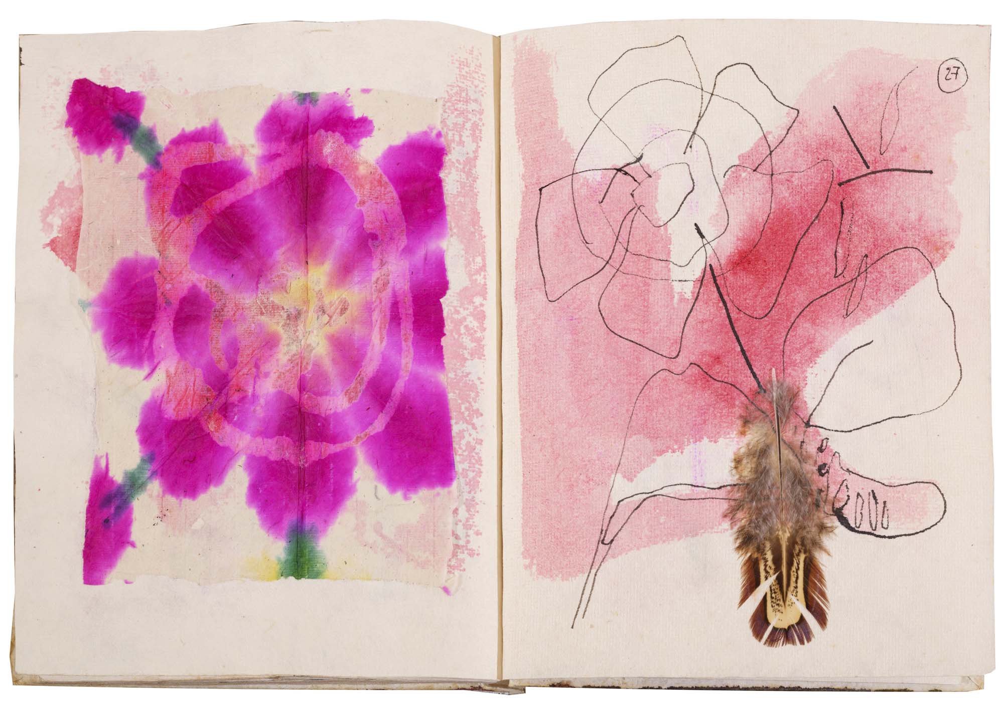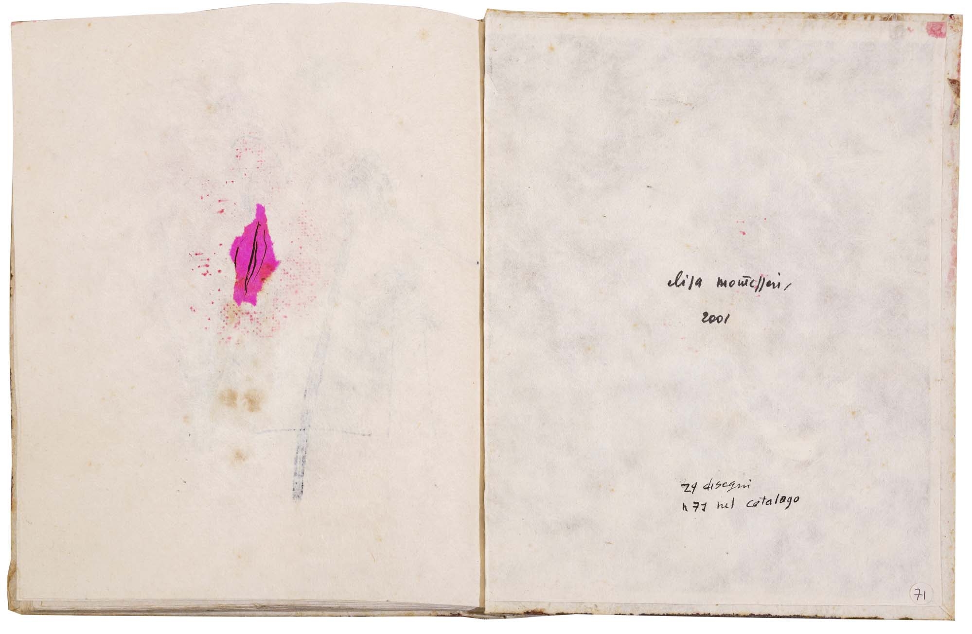 libro rilegato contenente 29 tecniche miste su carta a mano (dipinte entrambe le facciate) cm. 24,5x19 (fogli) - 25,5x23x2 (libro)