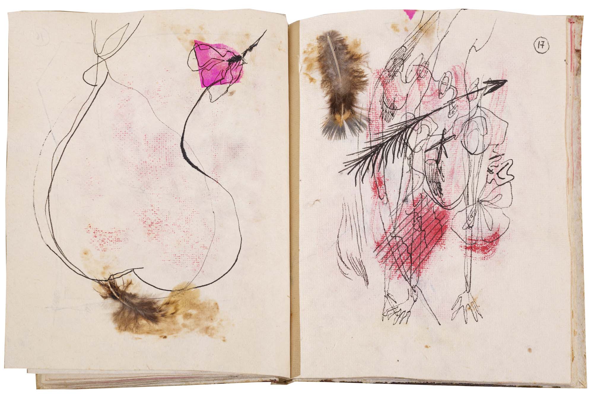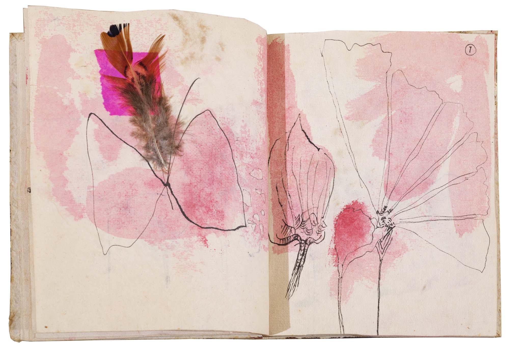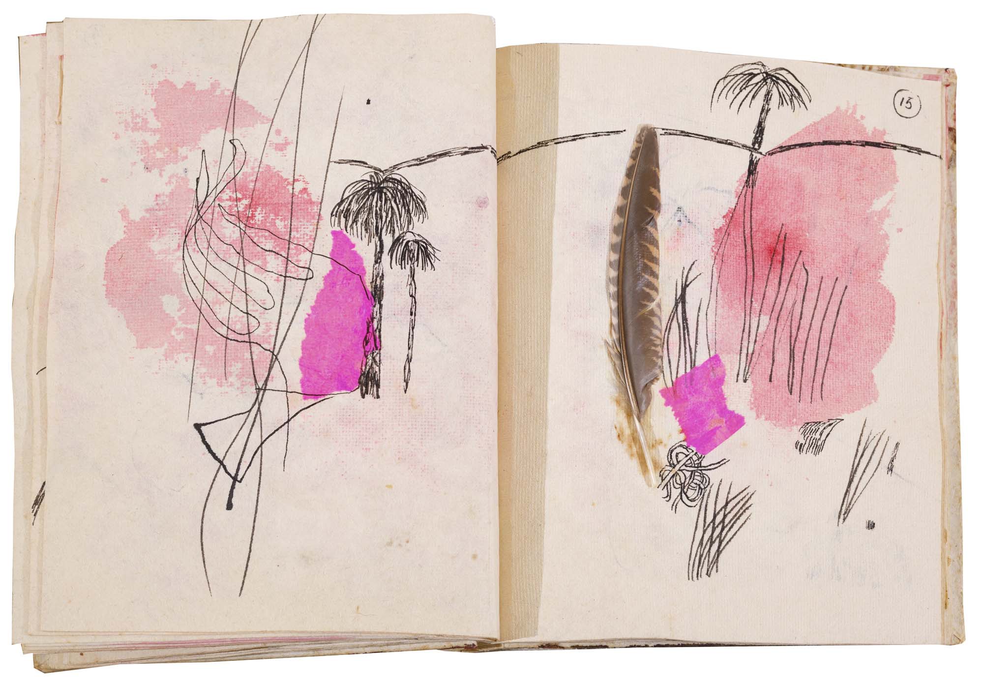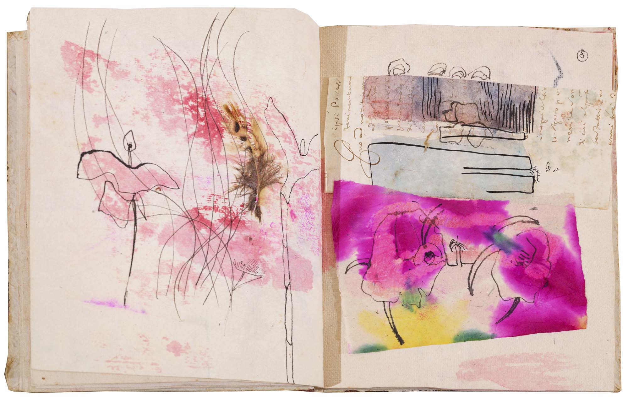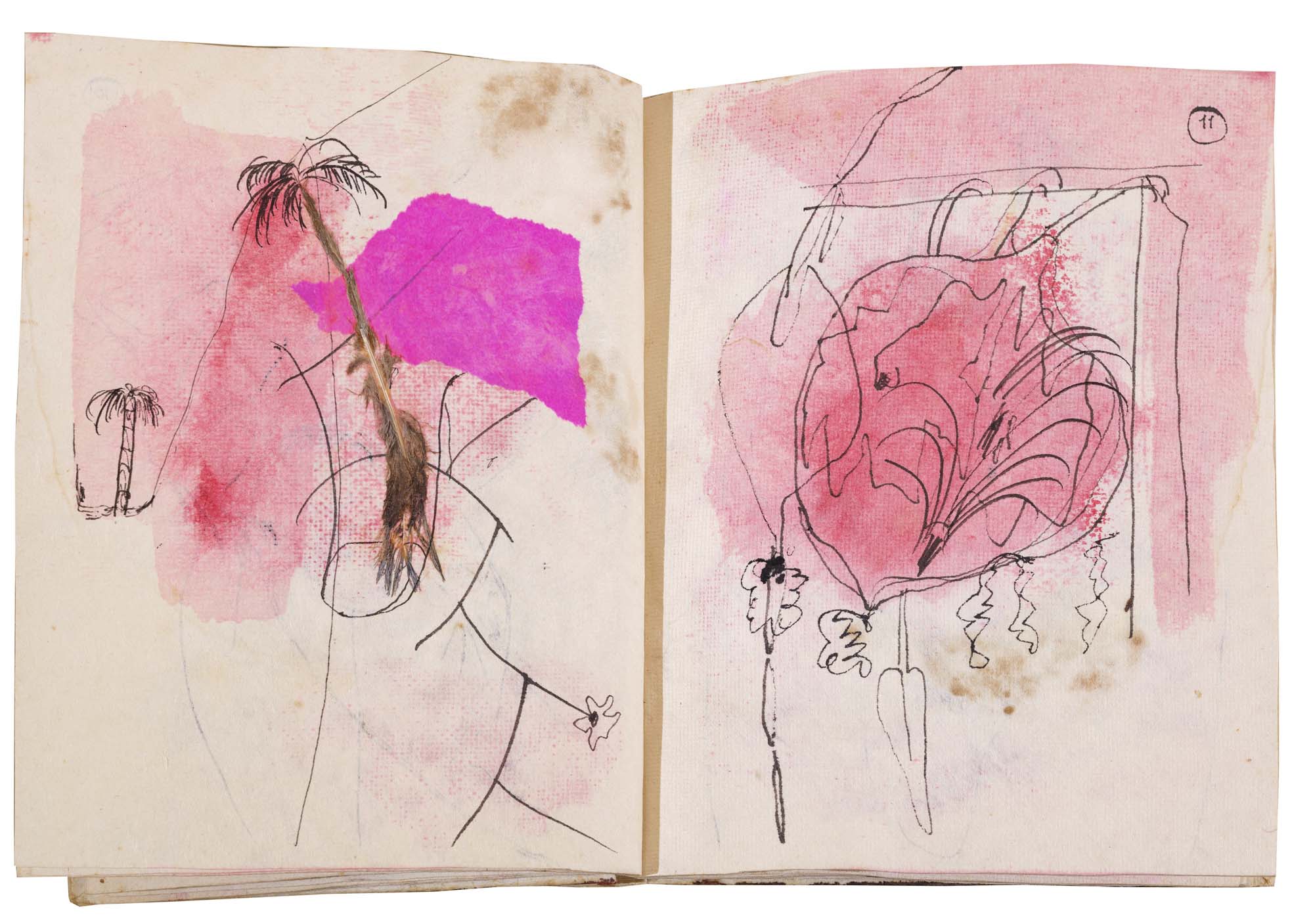 libro rilegato contenente 29 tecniche miste su carta a mano (dipinte entrambe le facciate) cm. 24,5x19 (fogli) - 25,5x23x2 (libro)