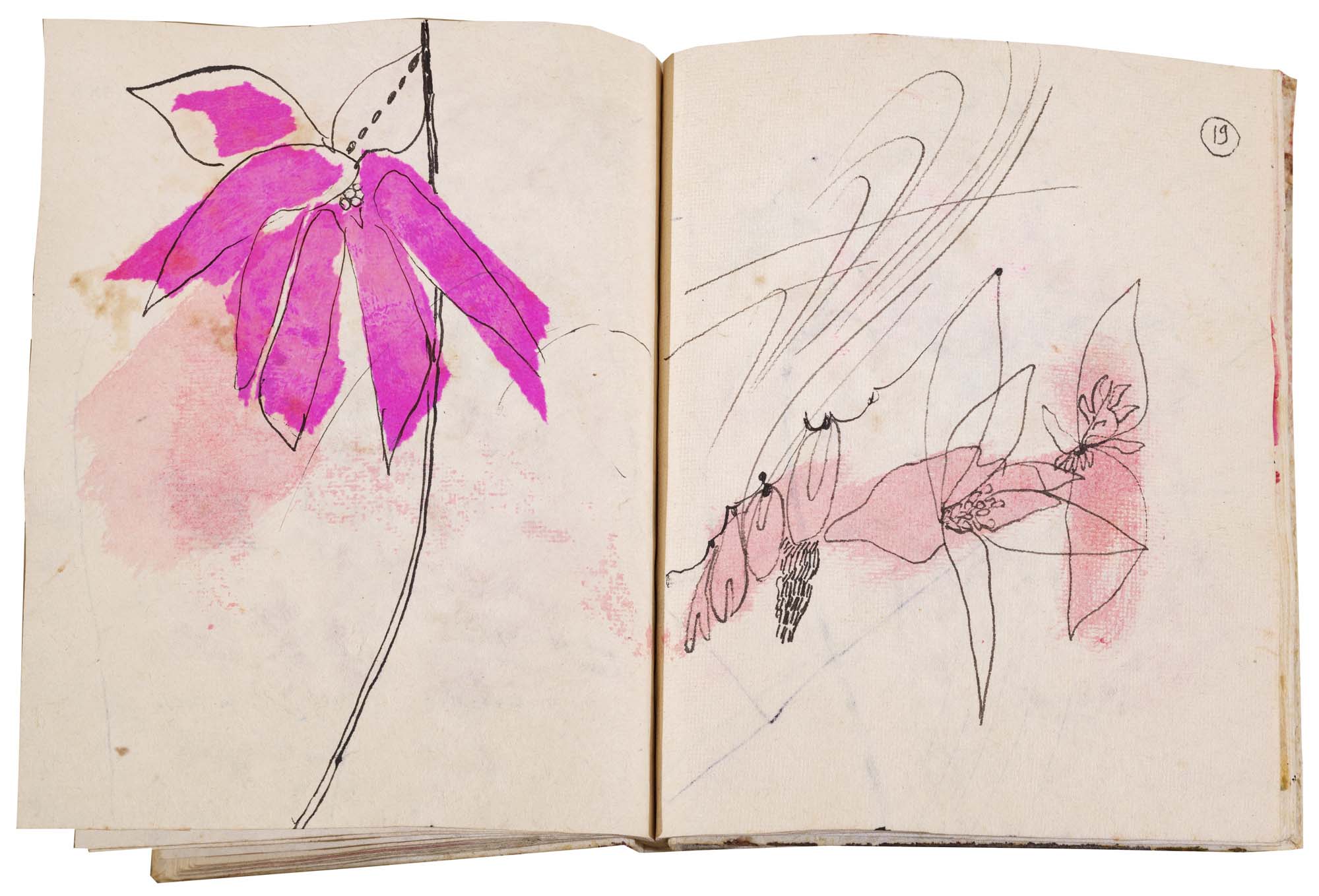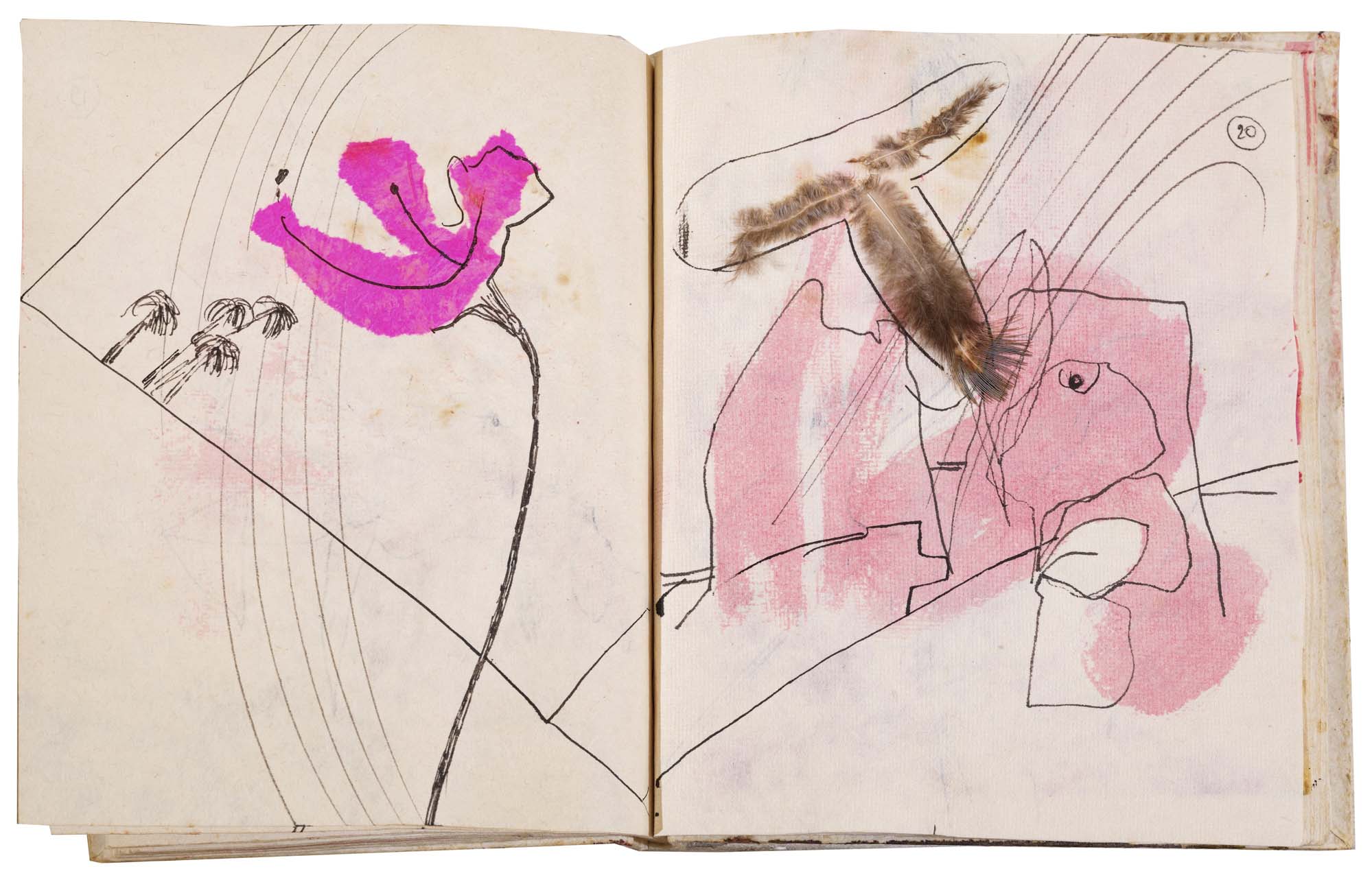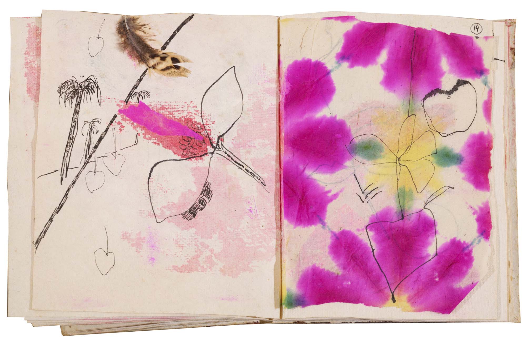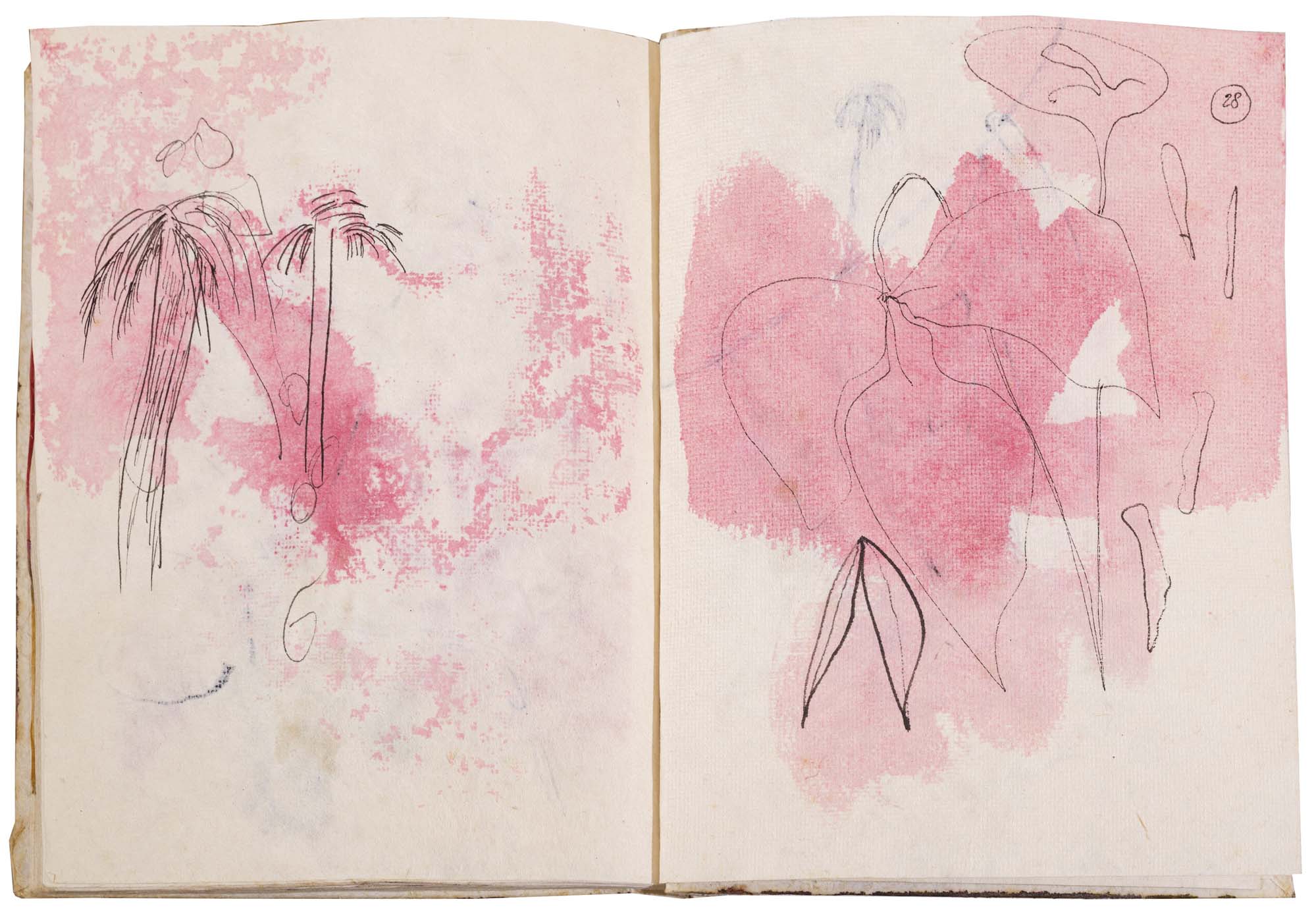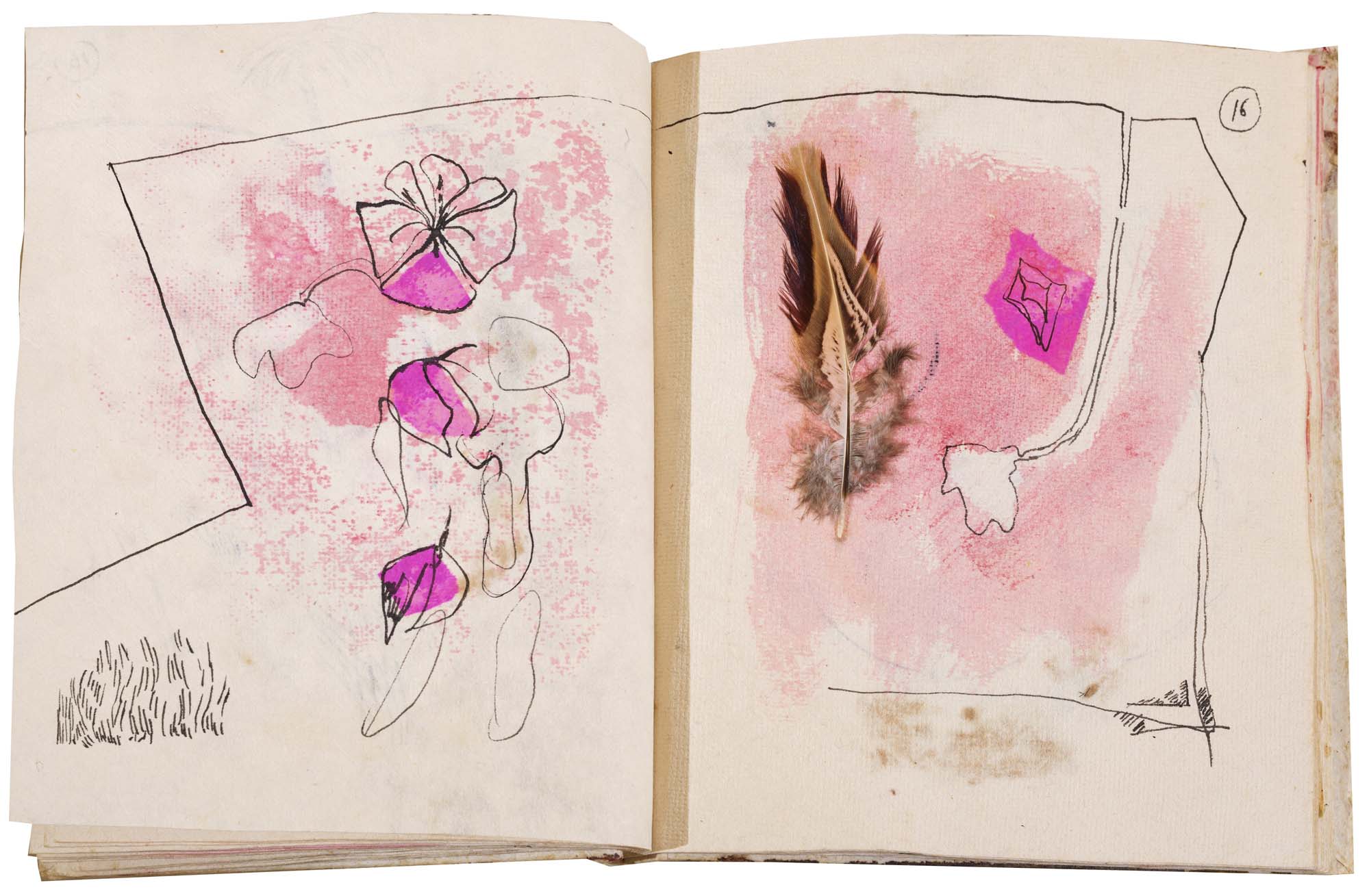 libro rilegato contenente 29 tecniche miste su carta a mano (dipinte entrambe le facciate) cm. 24,5x19 (fogli) - 25,5x23x2 (libro)