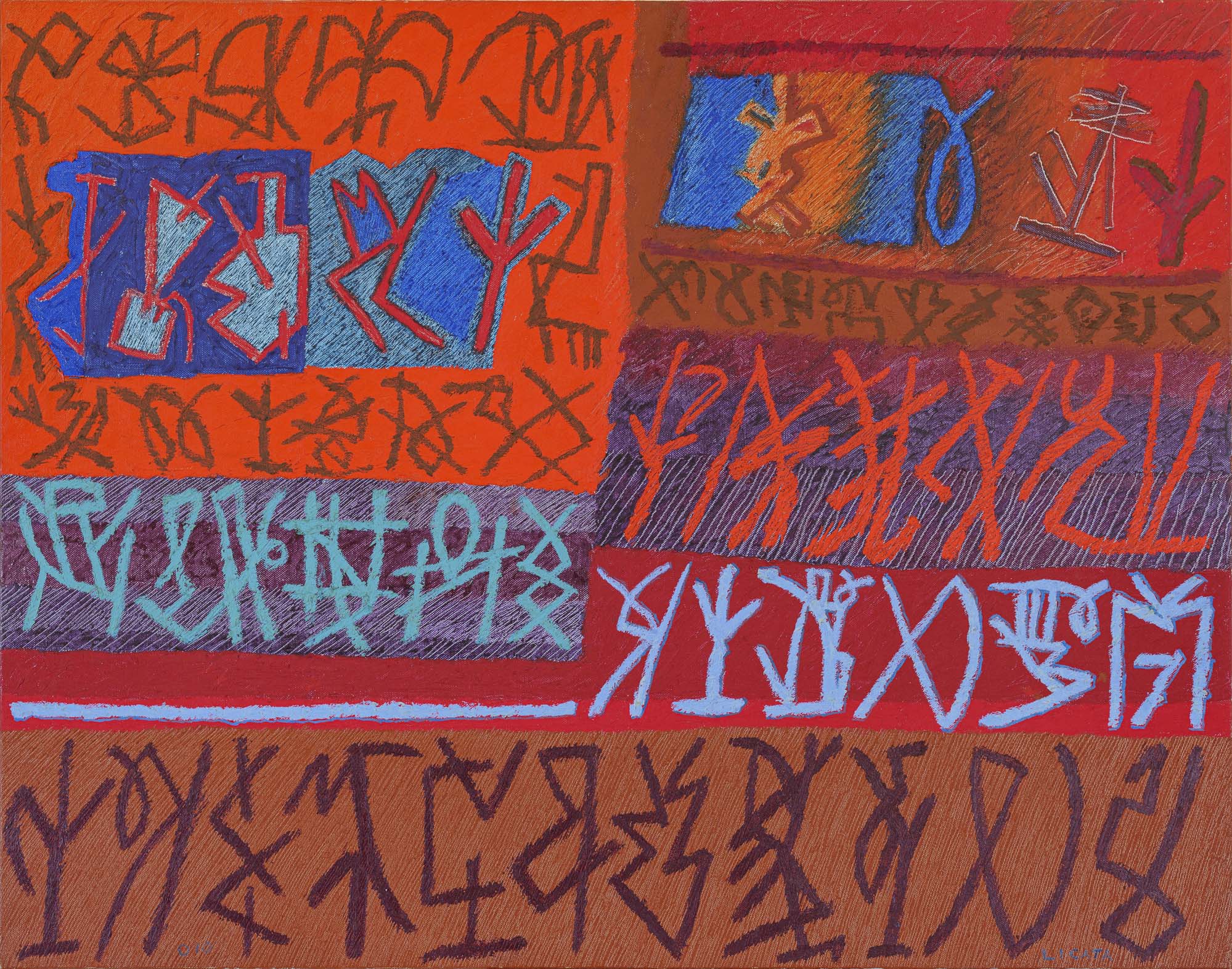 firma in basso a destra, data in basso a sinistra