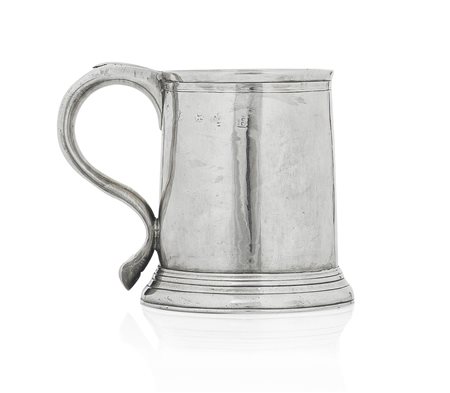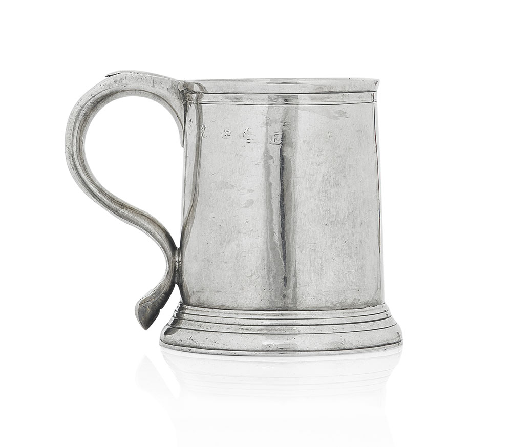 MUG GIORGIO I IN ARGENTO, LONDRA, 1720, liscio su base gradinata con manico a voluta.