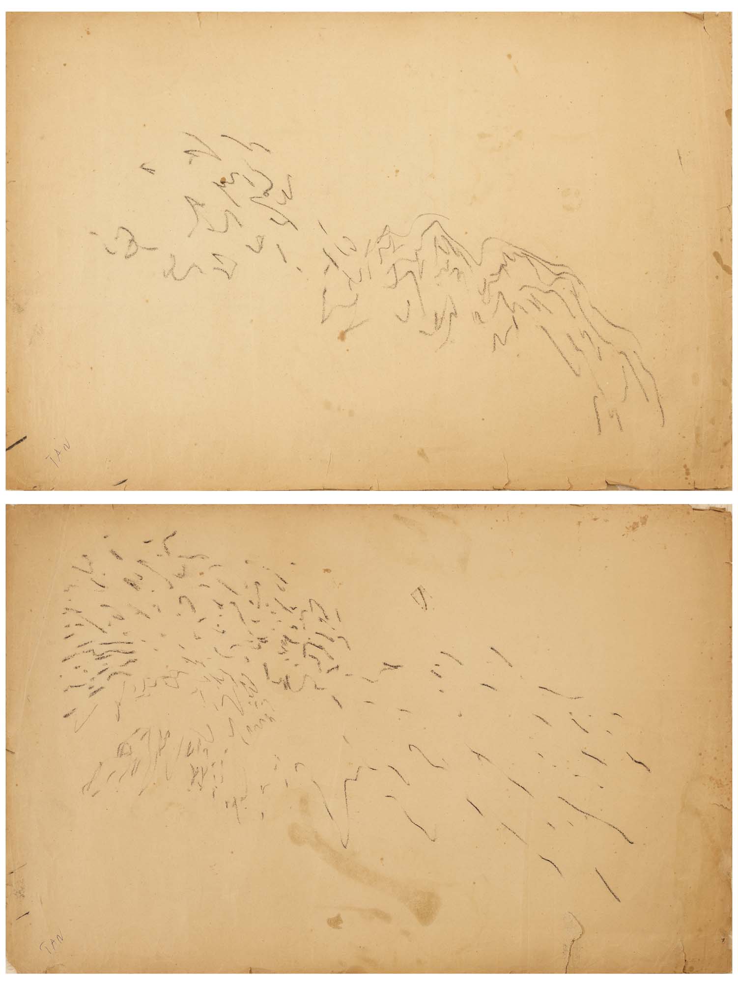 lotto di 2 disegni a carboncino su carta cm. 75x50 cad.