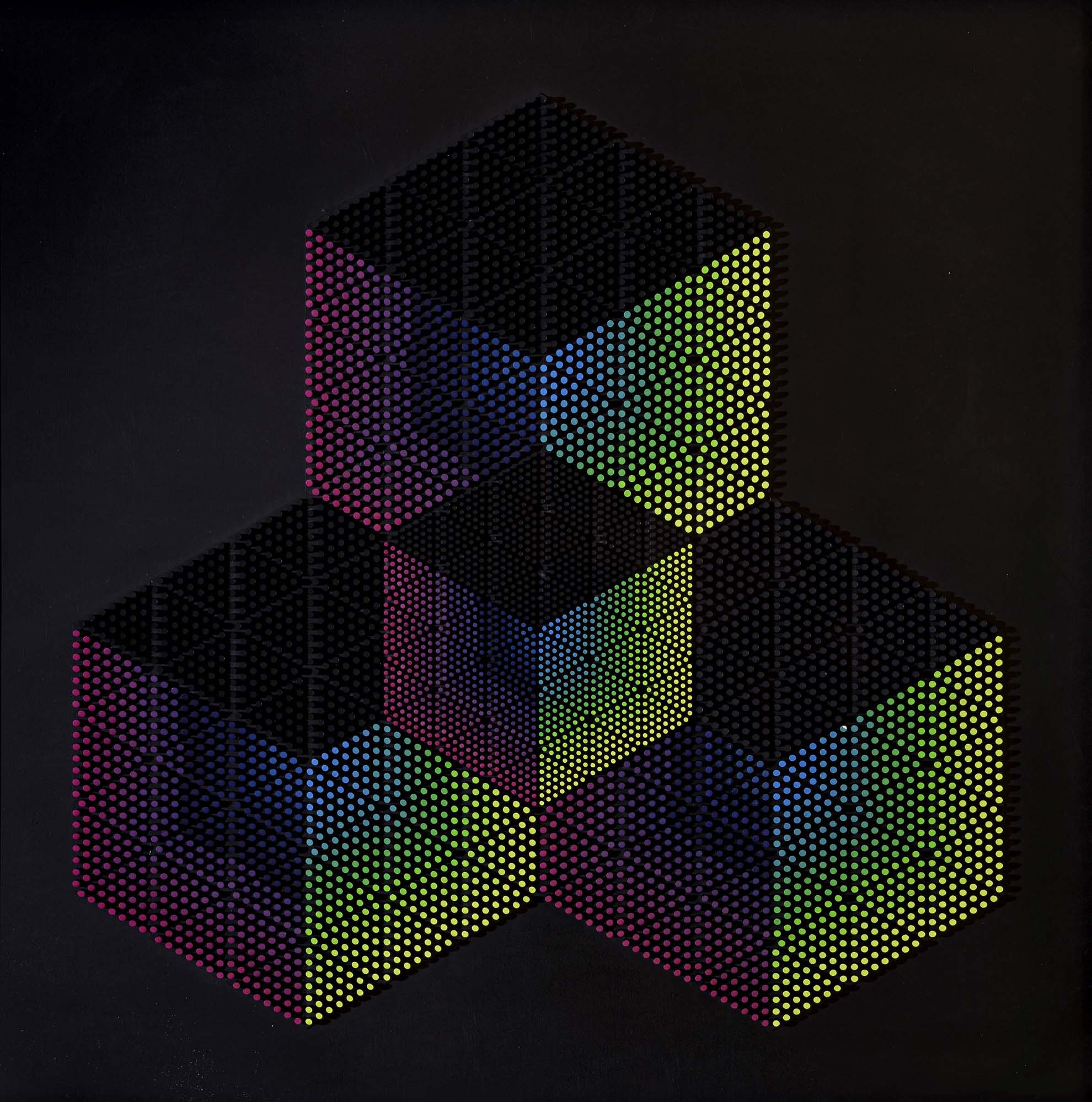 materiale plastico ad iniezione e colore acrilico cm. 80x80