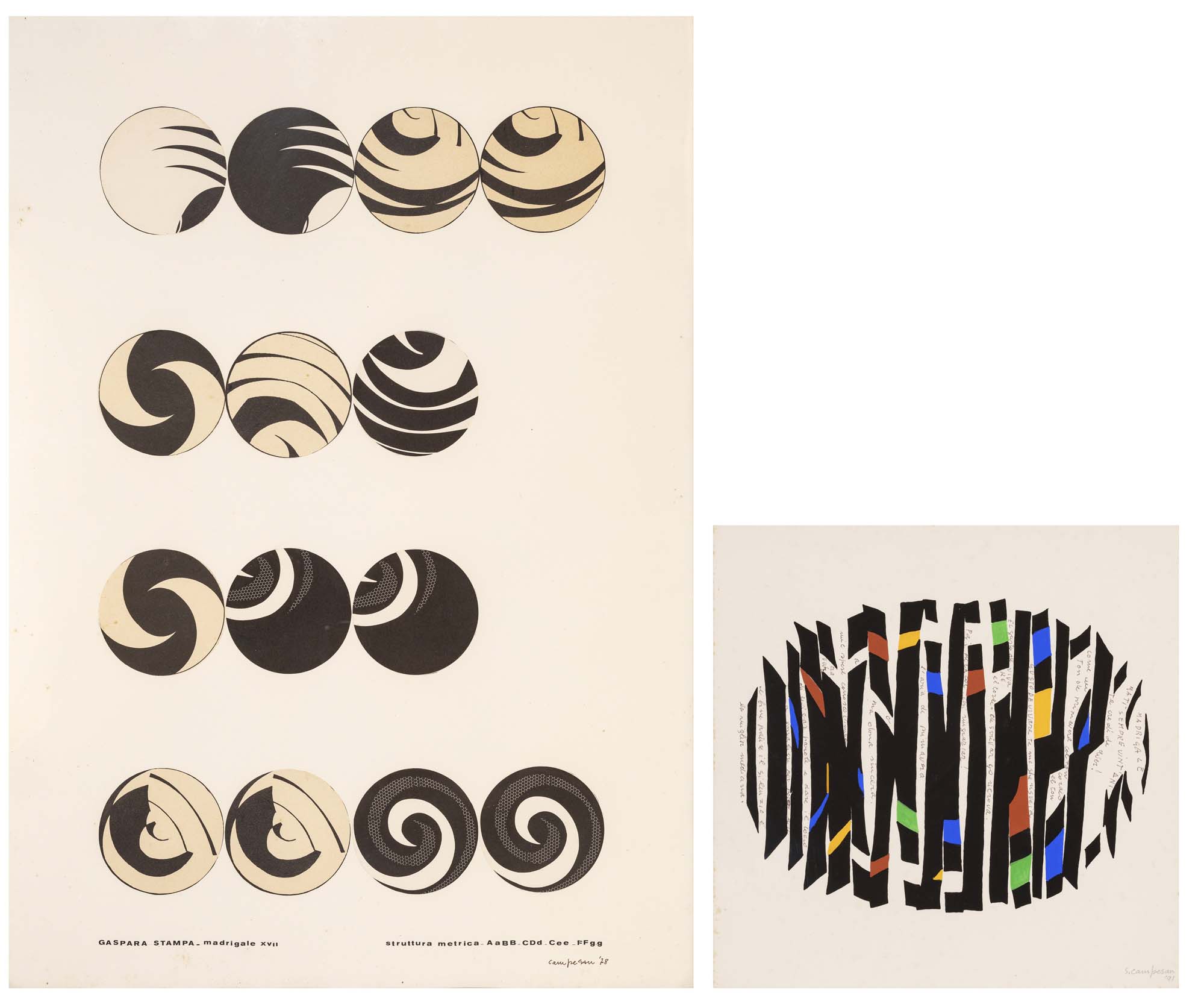 lotto di 2 tecniche miste e collage su cartoncino cm. 70x50 - cm. 33x33