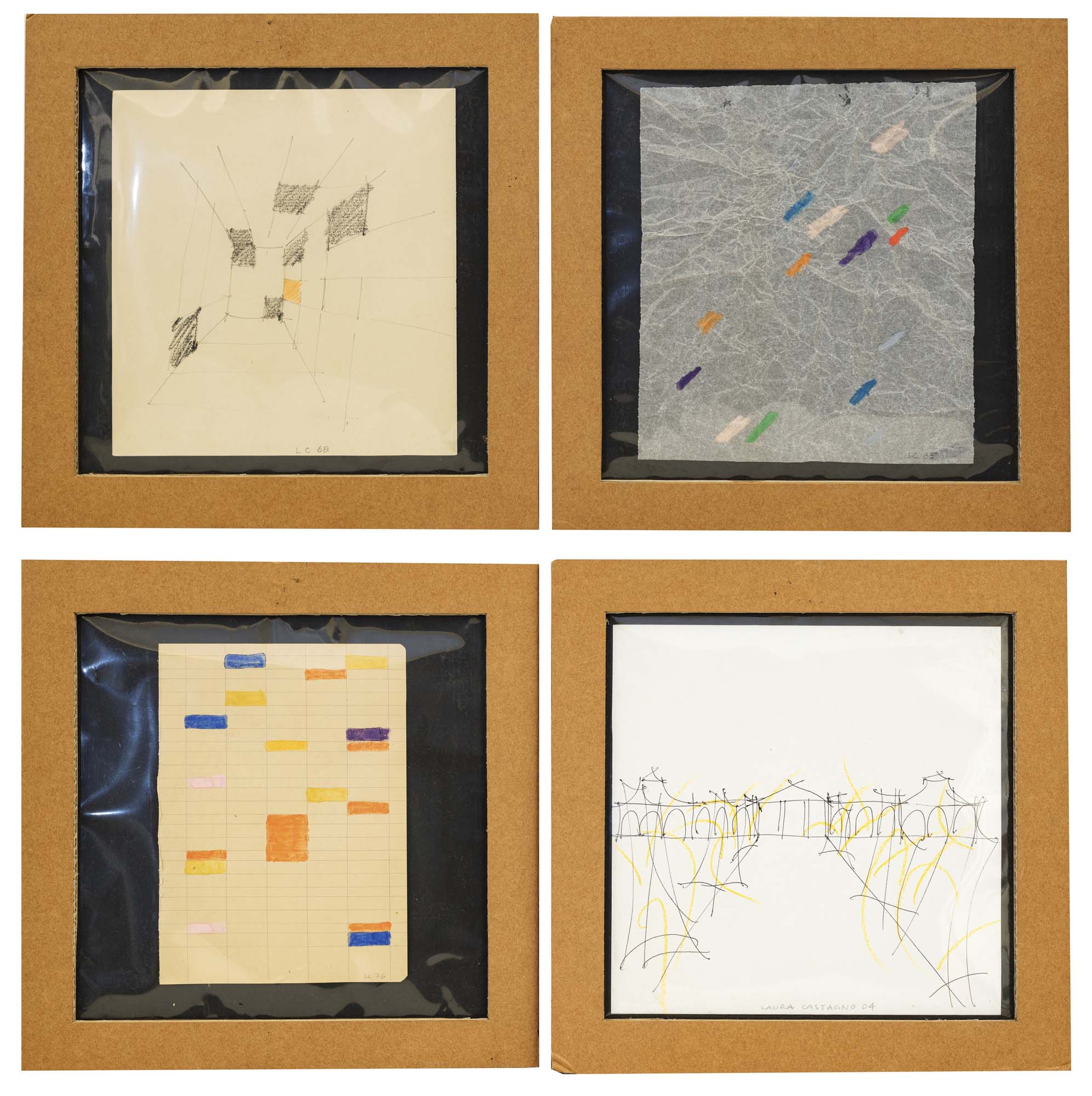lotto di 4 tecniche miste su carta