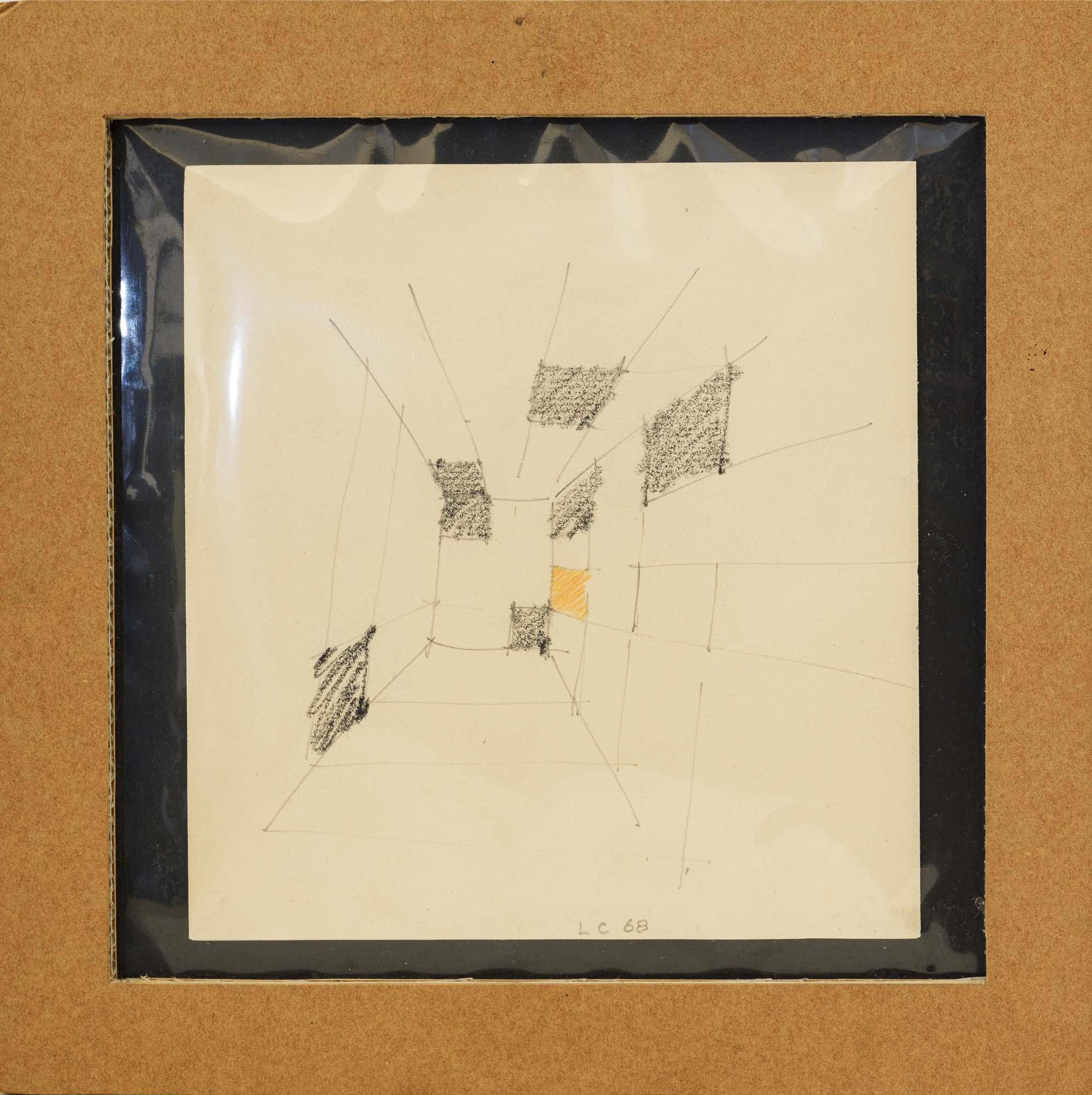 Progetto d'installazione: 1968 disegno a matita e pastello su carta cm. 22x19,5 sigla e data in basso al centro