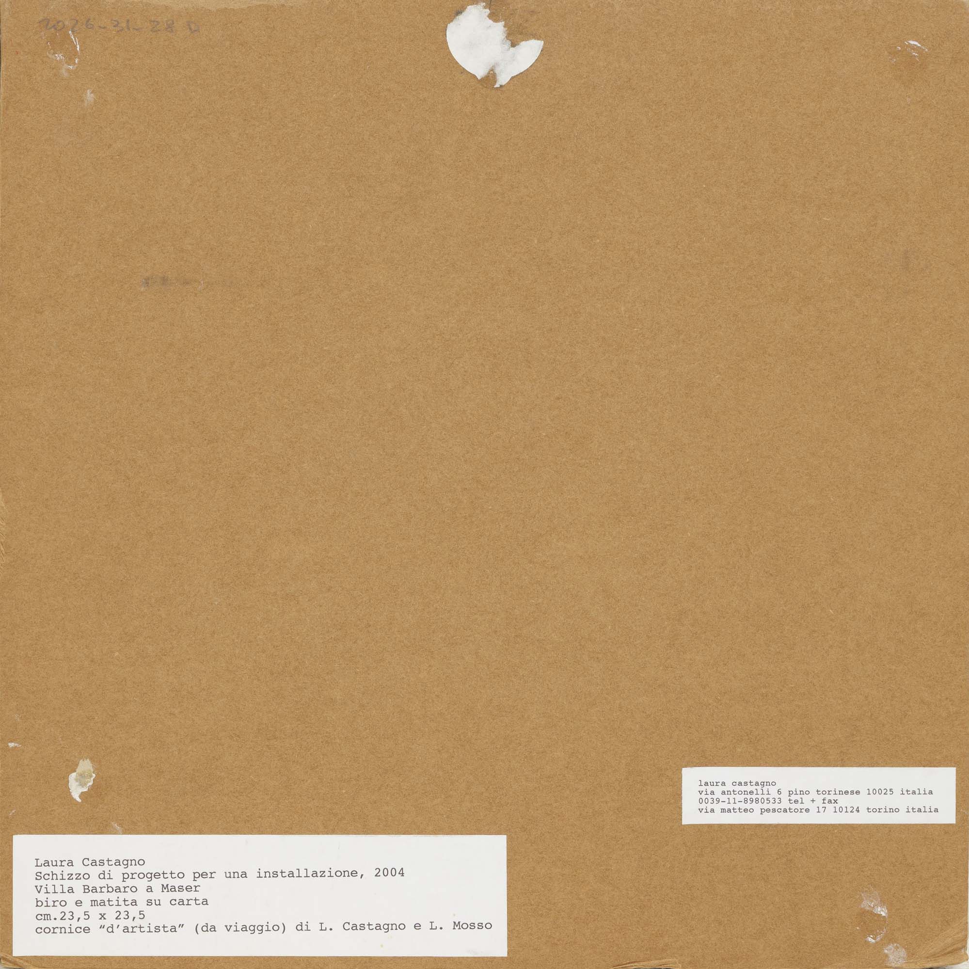 Schizzo di progetto per installazione: 2004 Villa Barbaro a Maser biro e matita su carta cm. 23,5x23,5, firma e data in basso al centro