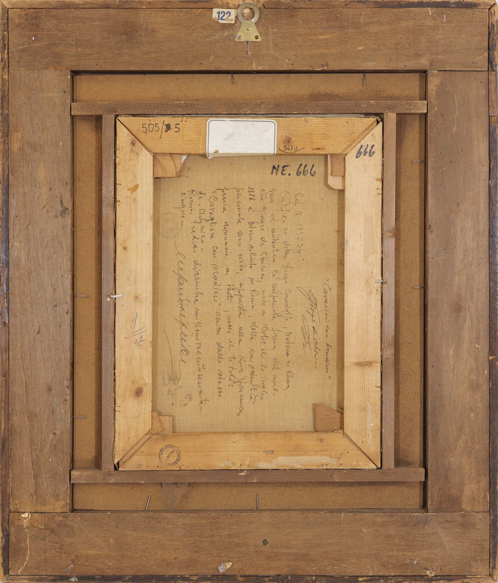 firma in basso a destra, firma e titolo al retro (confermata dal dottor Diego Gandolfo notaio in Roma)
