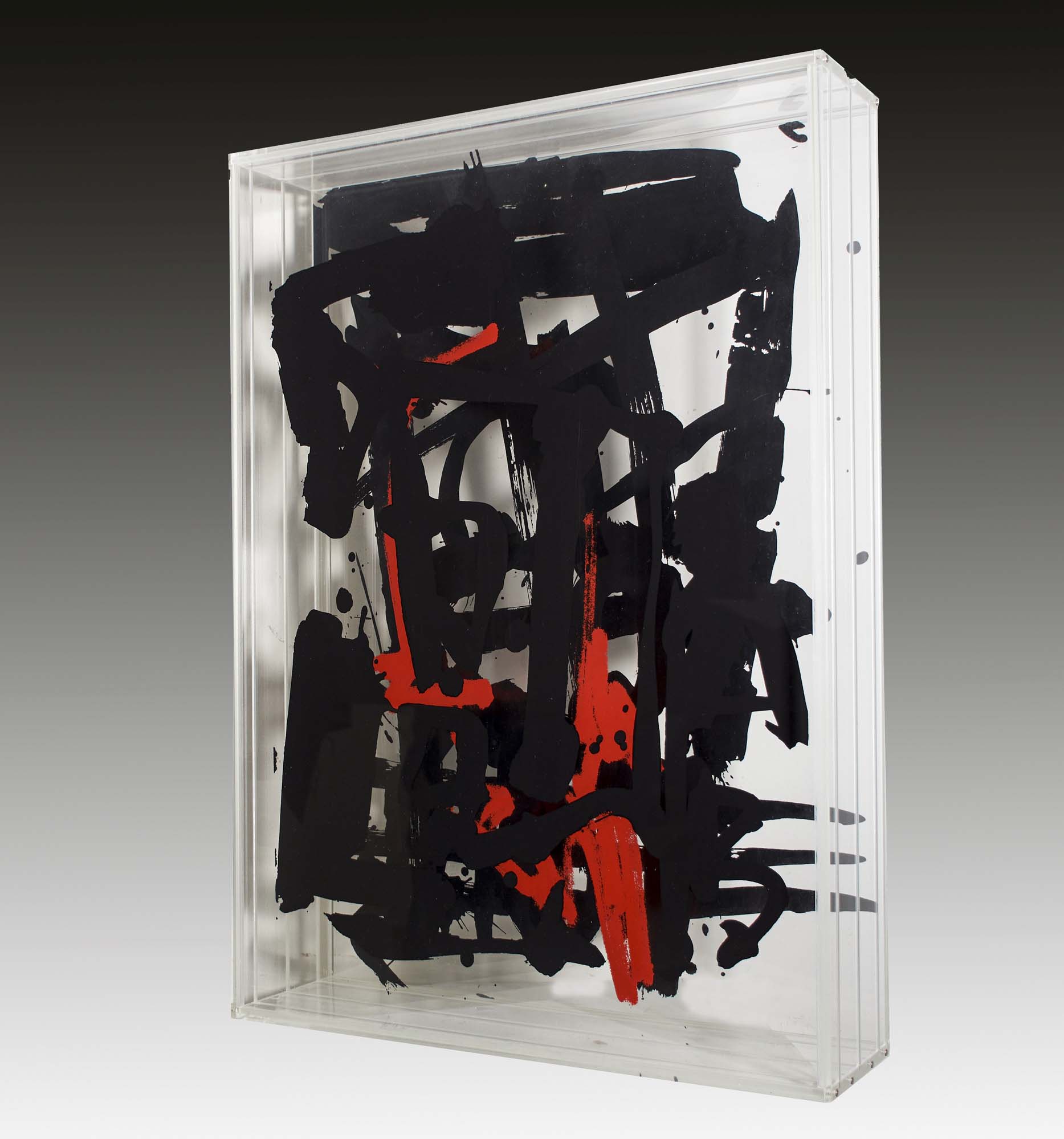 3 serigrafie su plexiglass entro teca es. 47/99 cm. 75x50x15