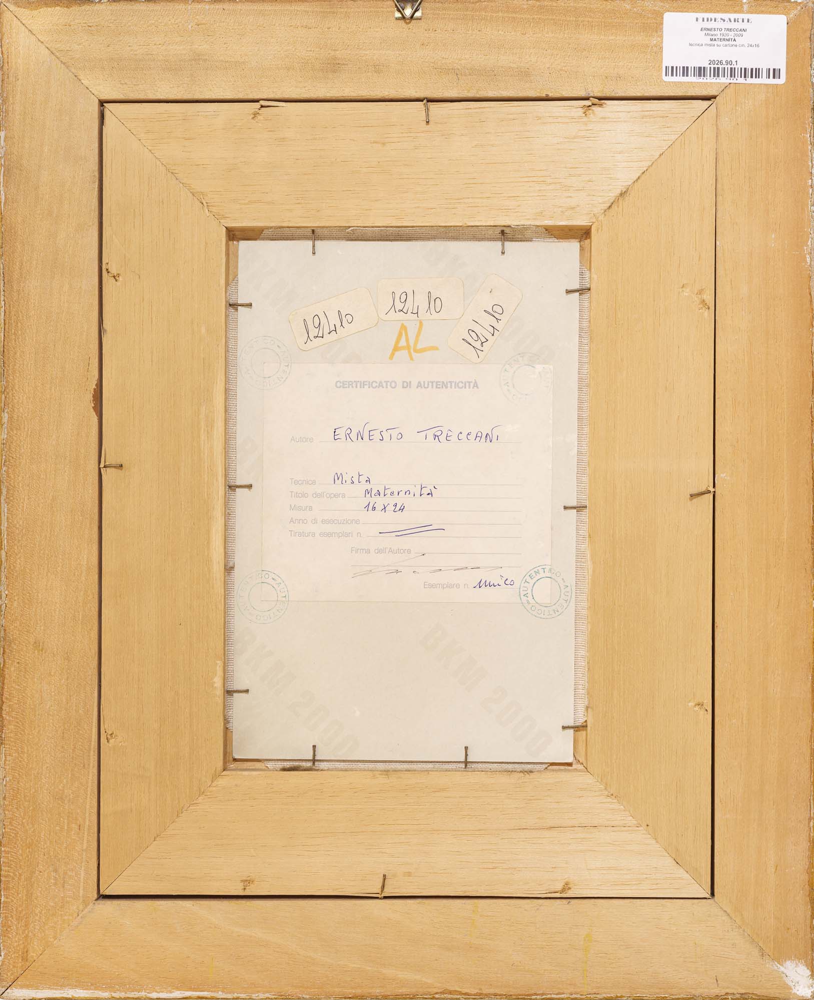 firma in basso, etichetta e timbri di autenticità dell'Autore al retro