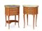 DUE MOBILETTI A ROGNON, XIX SECOLO, in legni vari con piani in marmo, sostegni mossi e applicazioni in metallo dorato; sostituzioni e sbeccature.
