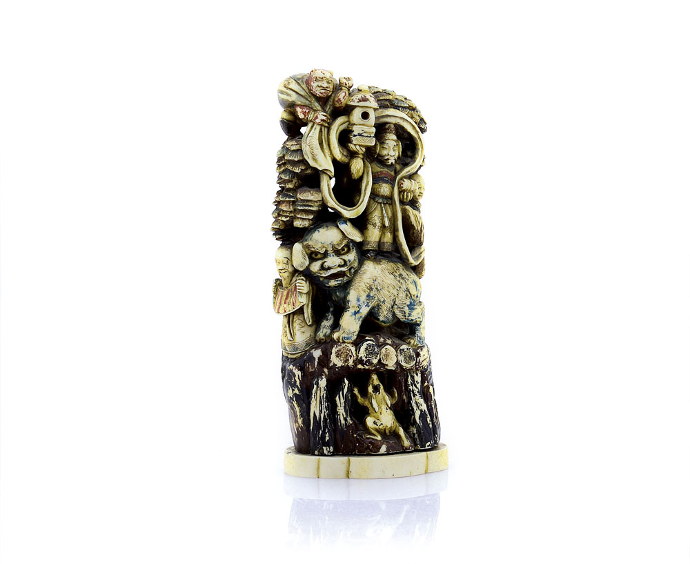 ARTE ORIENTALE GRUPPO IN AVORIO, GIAPPONE, FINE XIX SECOLO, raffigurante...