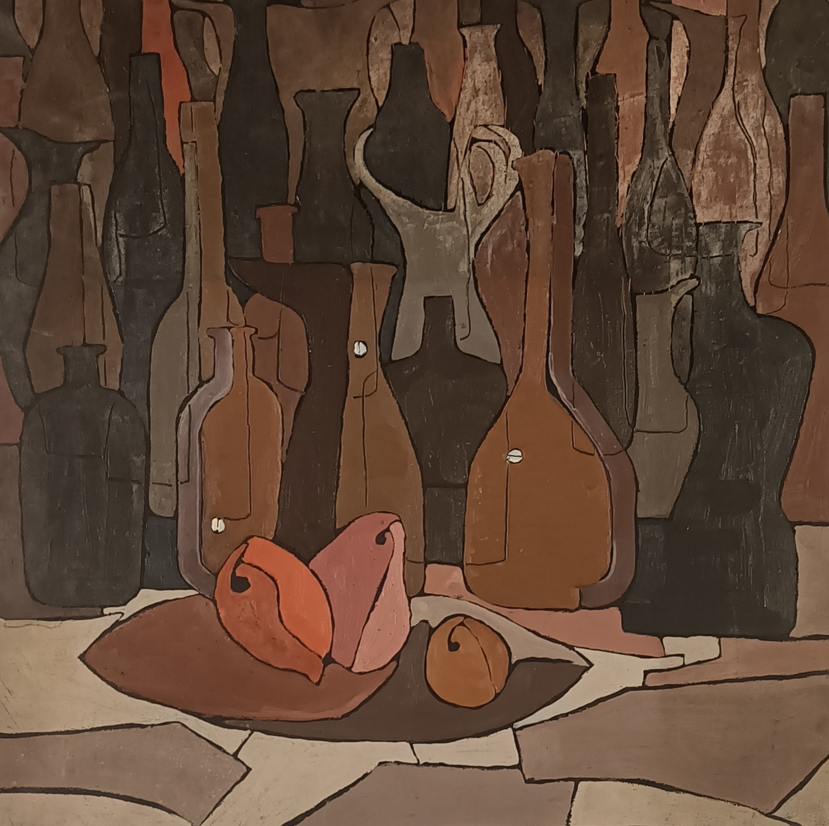 ANONIMO Anonimo (An) Bottiglie Olio su tela 60,00x60,00 Difetti.