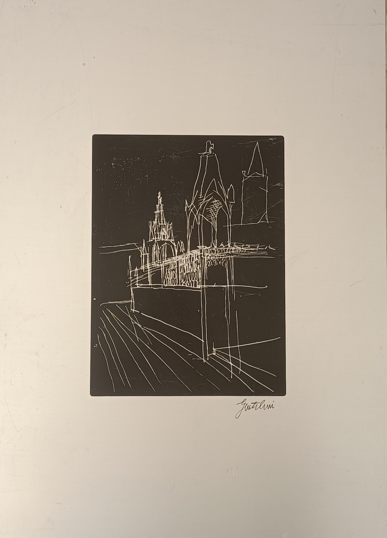 GENTILINI FRANCO Faenza (Ra) 1909 Cattedrale 1977 Serigrafia su alluminio es....