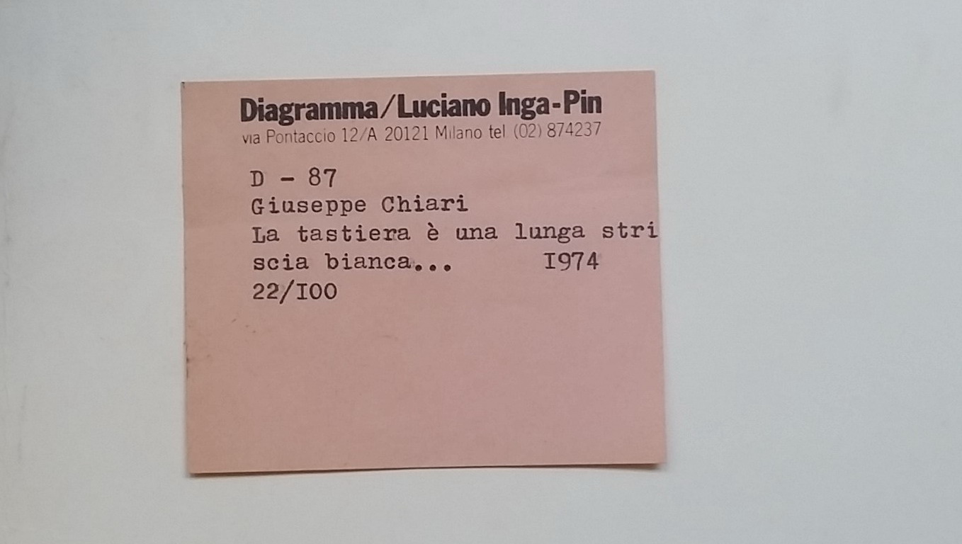 Etichetta Galleria Diagramma di Luciano Inga PIn al retro.