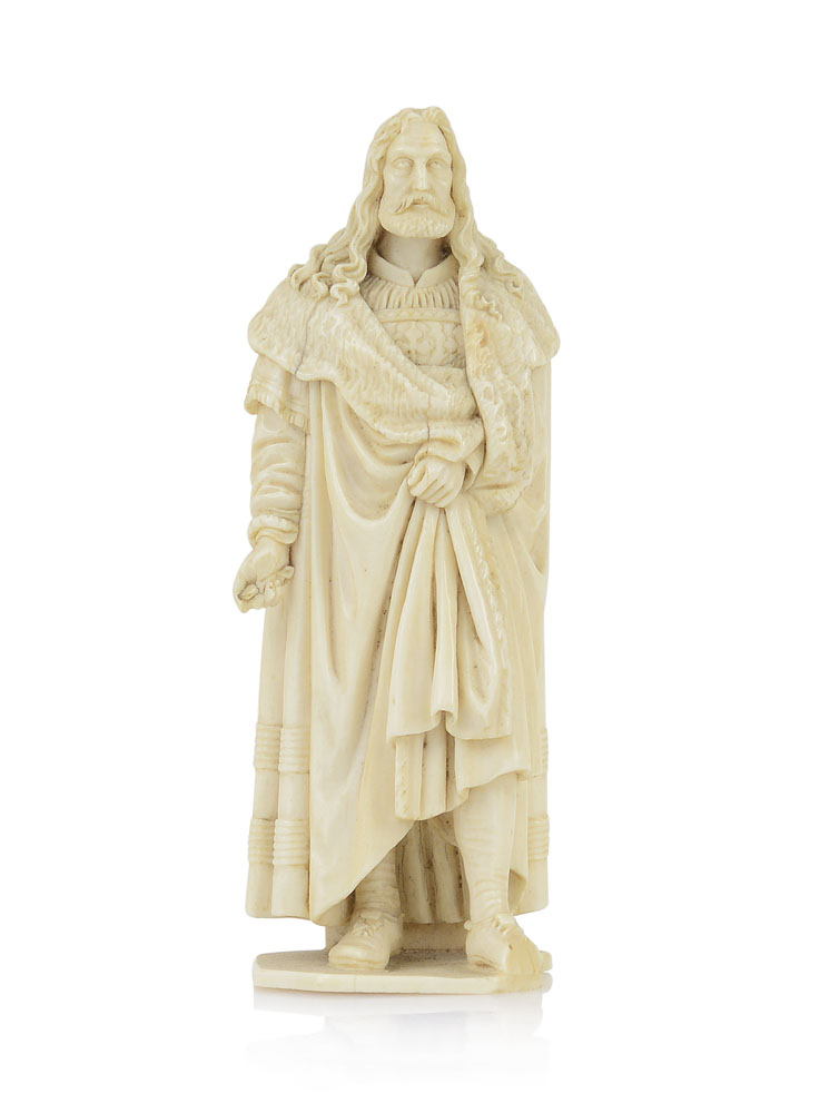 AVORIO EUROPEO SCULTURA IN AVORIO, XIX SECOLO, raffigurante un sovrano;...