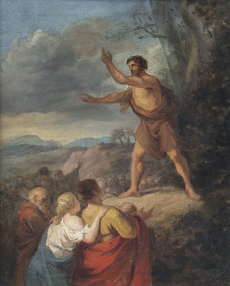 SCUOLA FRANCESE DEL XVIII SECOLO La predica del Battista Olio su tela, cm...