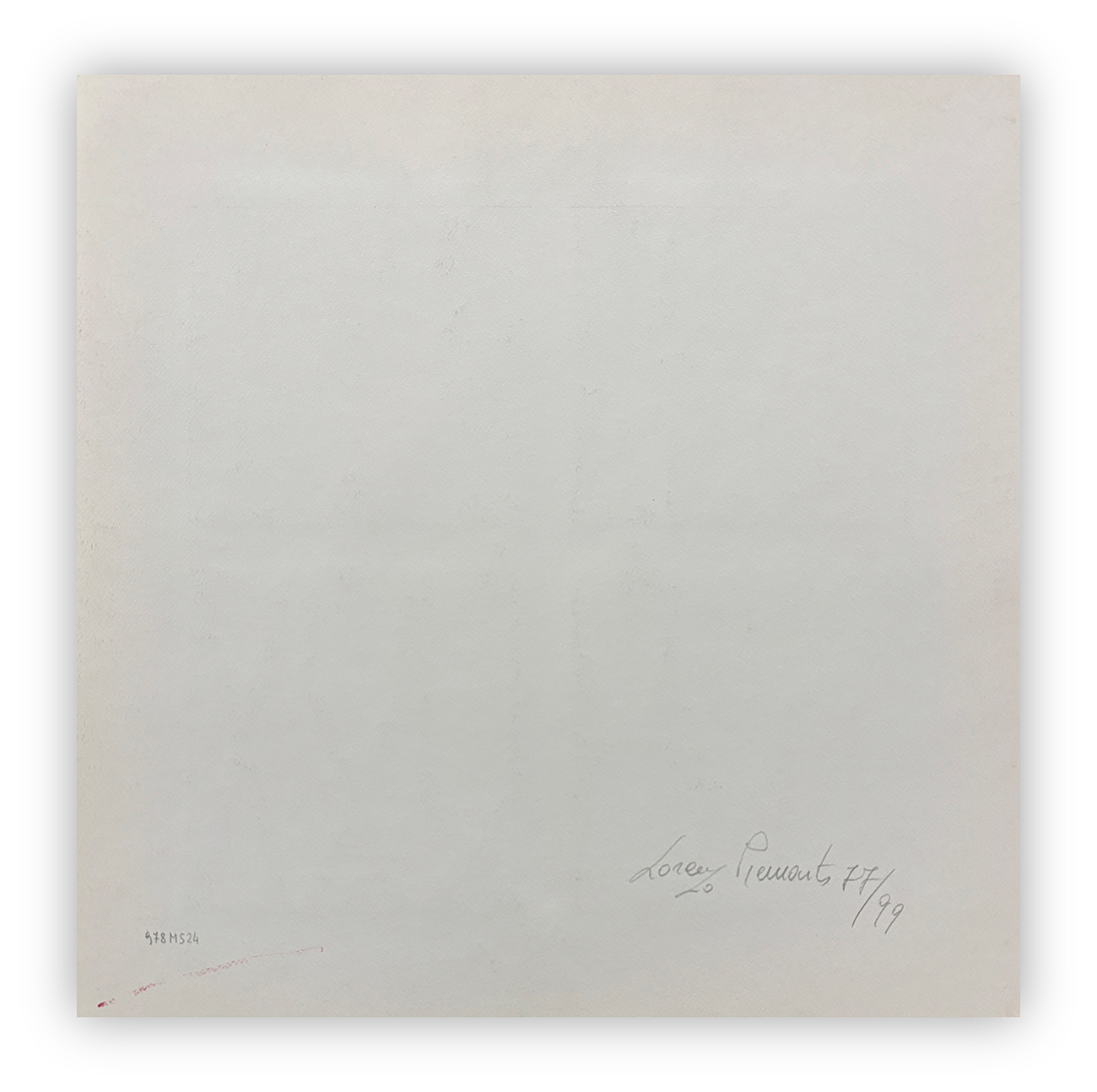 Firma e numerazione (Esemplare 77/99) a matita al retro