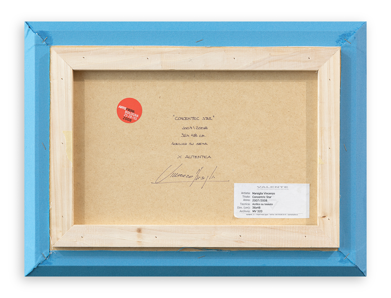 Etichetta della Galleria Valente Arte Contemporanea (SV) al retro