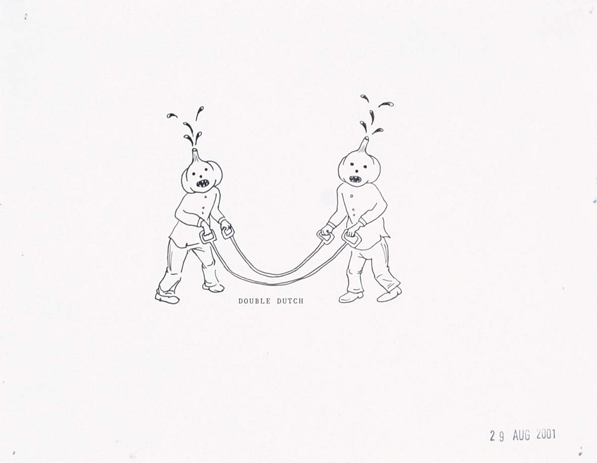 THE ROYAL ART LODGE 1996 Double dutch 2001 disegno a china su carta 21,5x28 cm data in basso a destra titolo al centro firme al retro il gruppo The Royal Art Lodge si fonda in Canada nel 1996 ed è composto dai seguenti Artisti: Marcel Dzama, Neil Farber, Michael Dumontier, Hollie Dzama, Myles Langlois, Drue Langlois