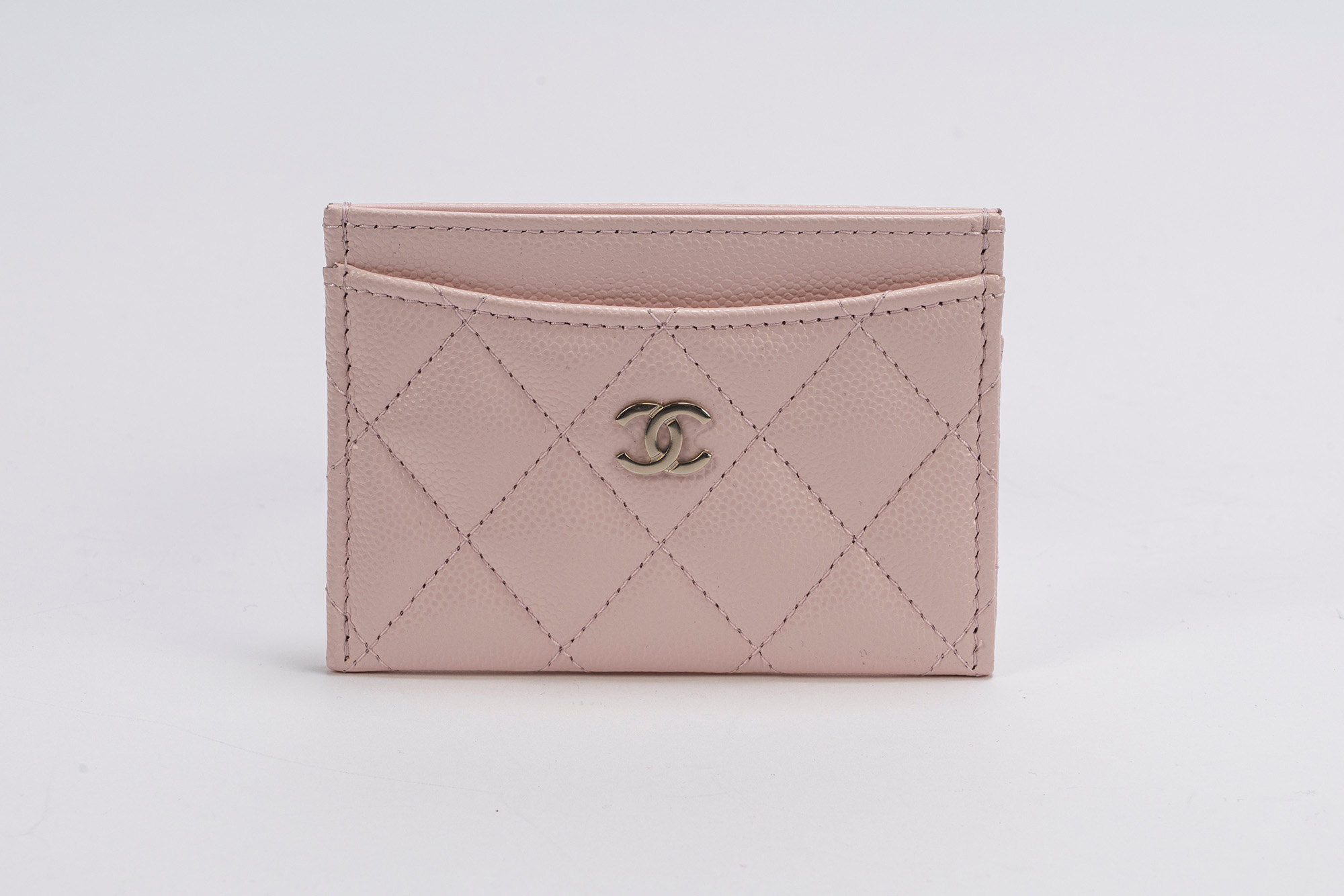 in pelle caviar matelassé color rosa, dettagli in metallo dorato, cm 11, con sacchettoin pelle caviar matelassé color rosa, dettagli in metallo dorato, cm 11, con sacchetto