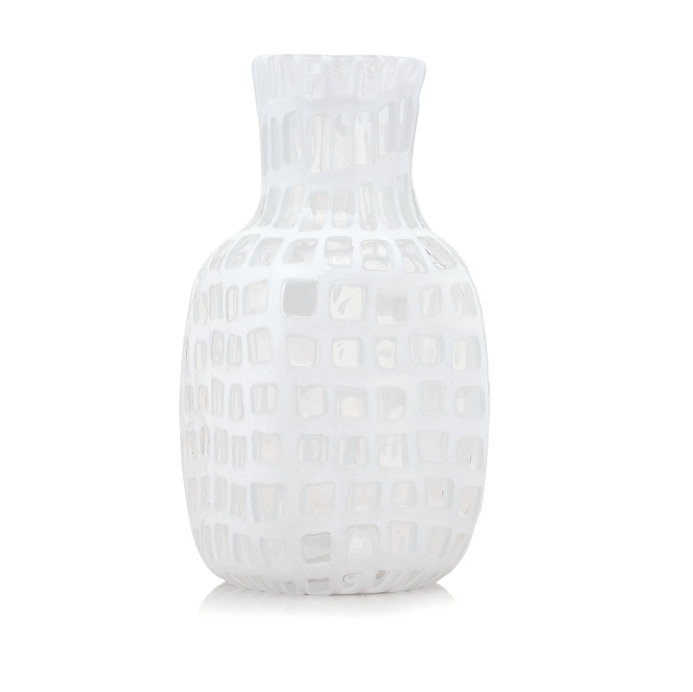 VASO "OCCHI" IN VETRO, VENINI, T.SCARPA, ANNI '50, soffiato con murrine in bianco; firma ad acido "venini murano ITALIA".