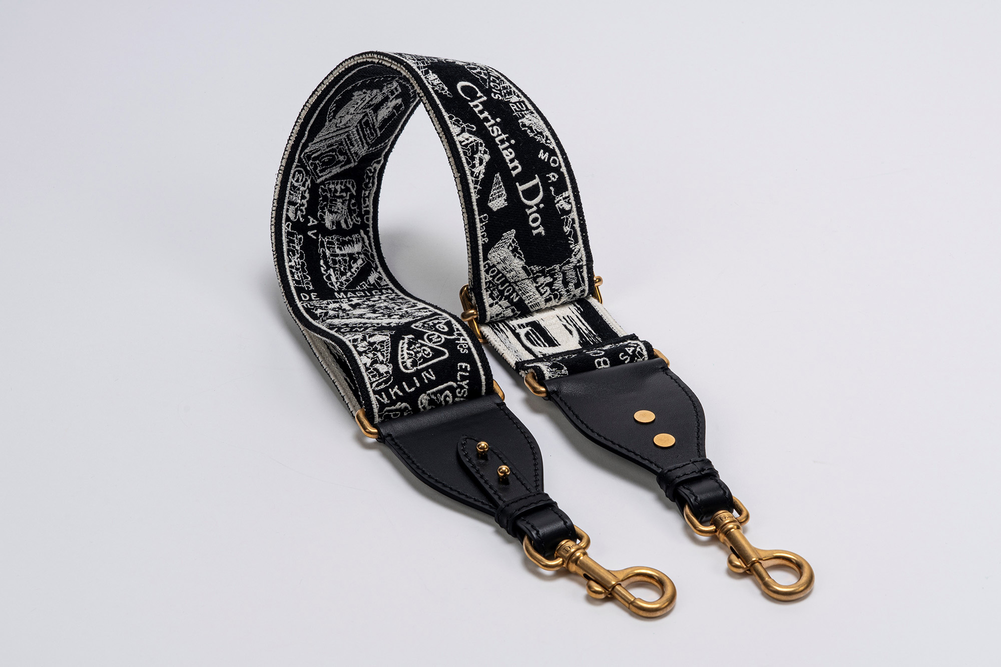 regolabile in canvas e pelle color nero, dettagli in metallo dorato, con sacchettoregolabile in canvas e pelle color nero, dettagli in metallo dorato, con sacchetto